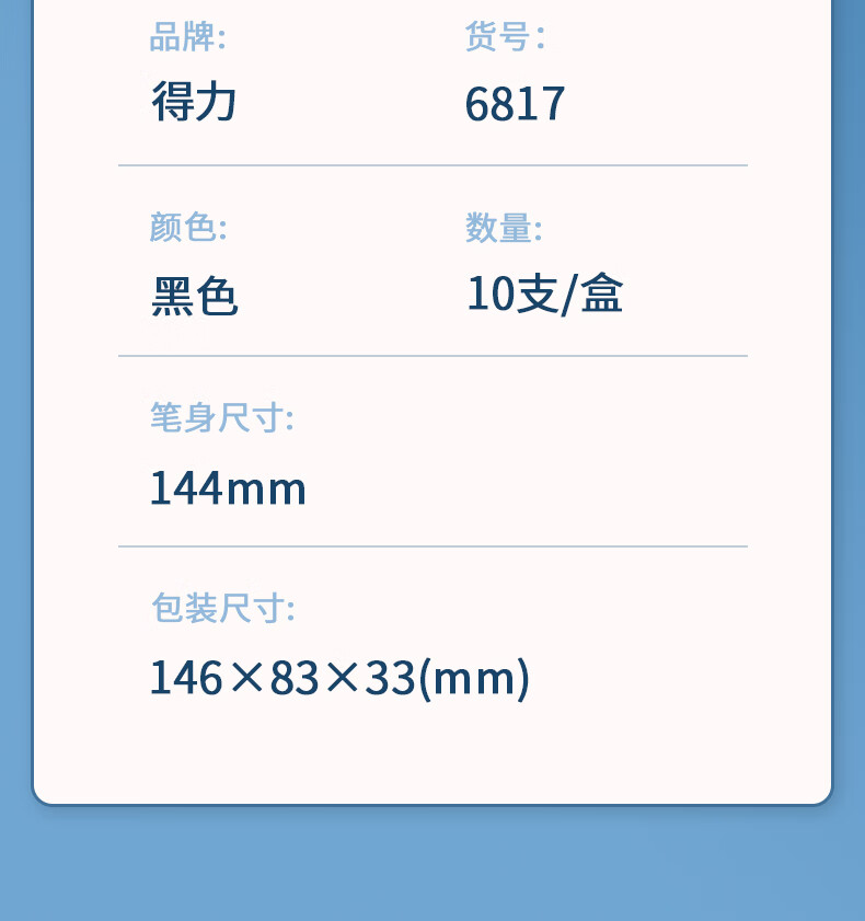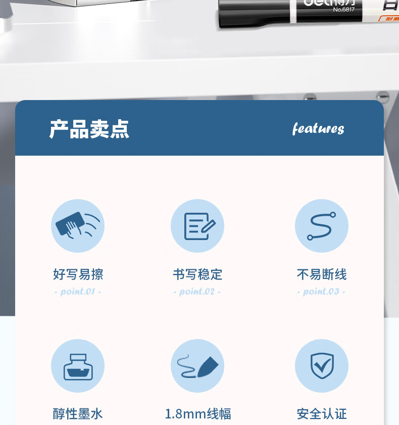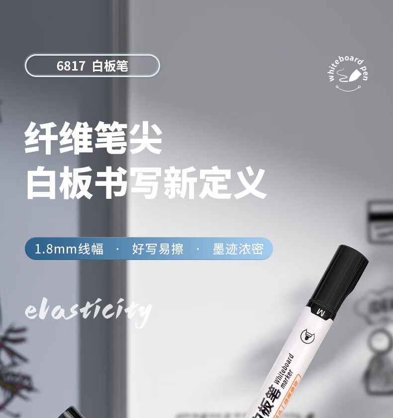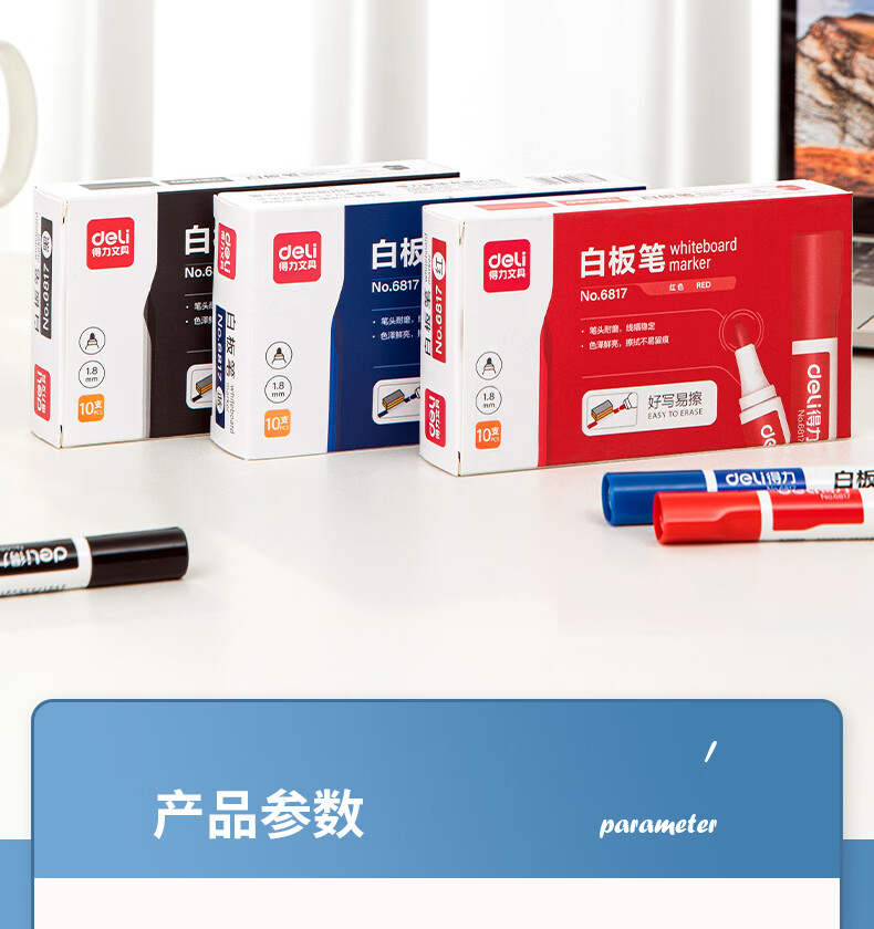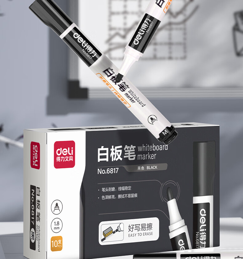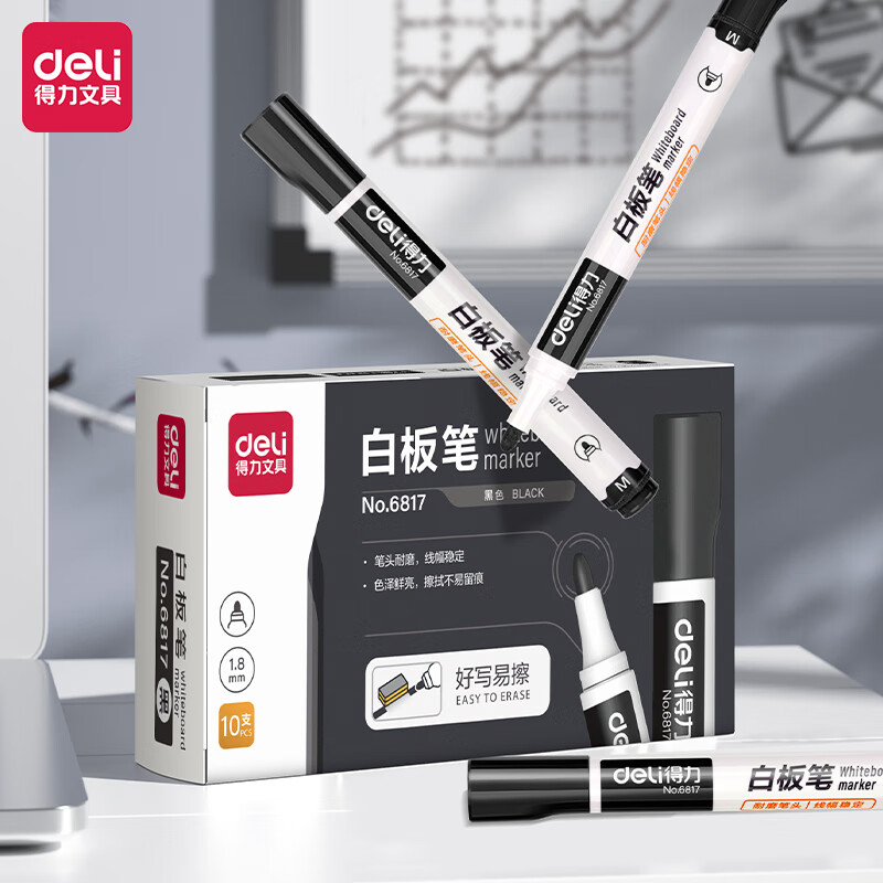 商品名稱:得力6817 白板筆 色澤明亮可擦易擦 黑色 10支/盒