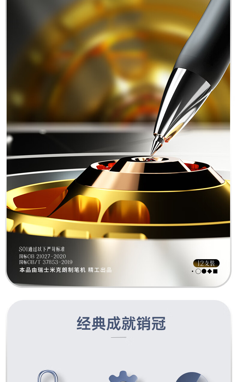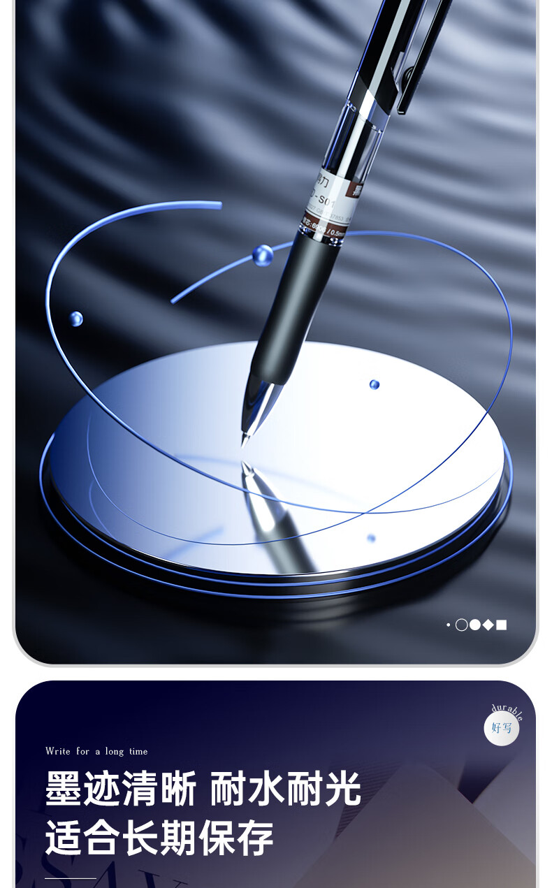 商品名稱:得力S01 黑色中性筆 簽字筆 0.5mm子彈頭經(jīng)典辦公按動筆水筆 12支/盒