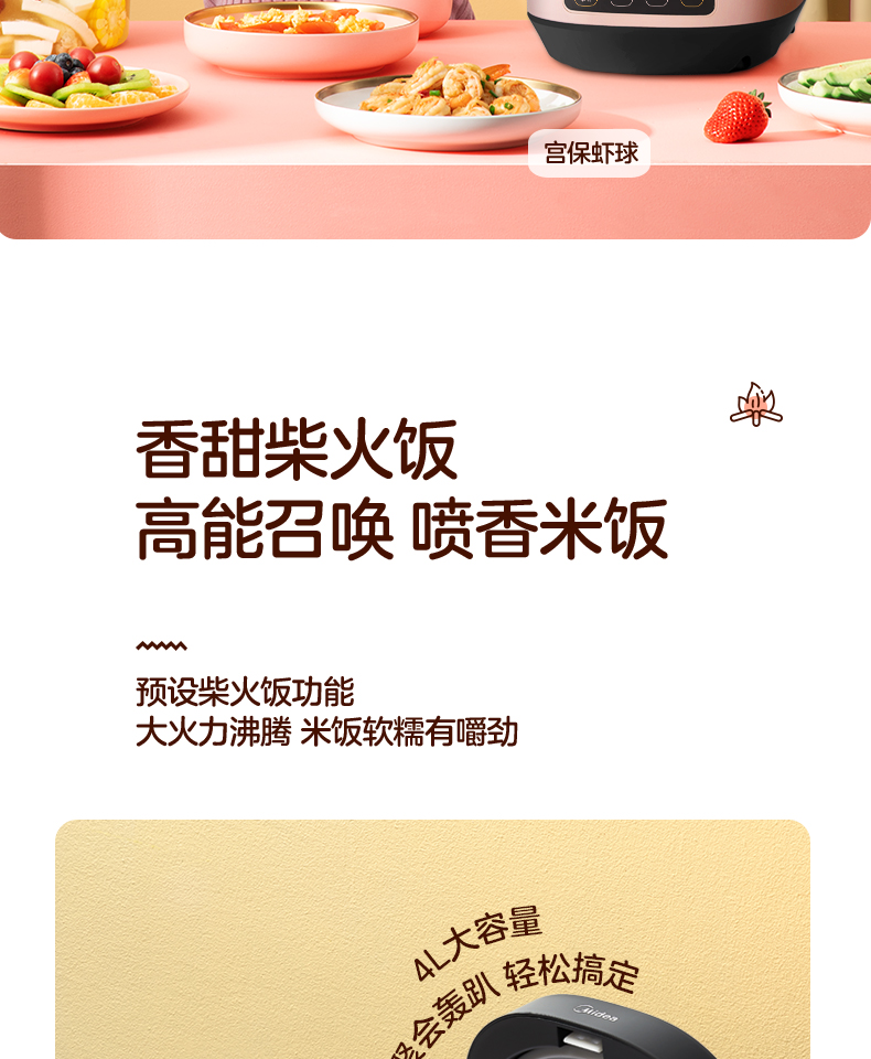商品名稱:美的MB-AFB4062R 電飯煲 電飯鍋底盤加熱智能自動4L不粘鍋聚能釜定時預(yù)約燒湯燒飯