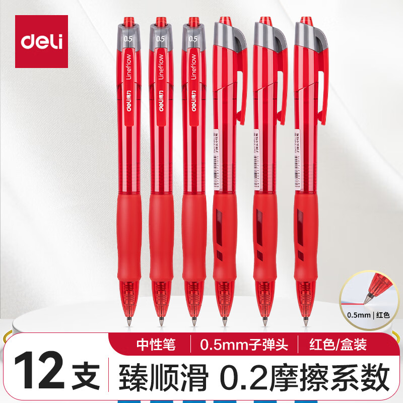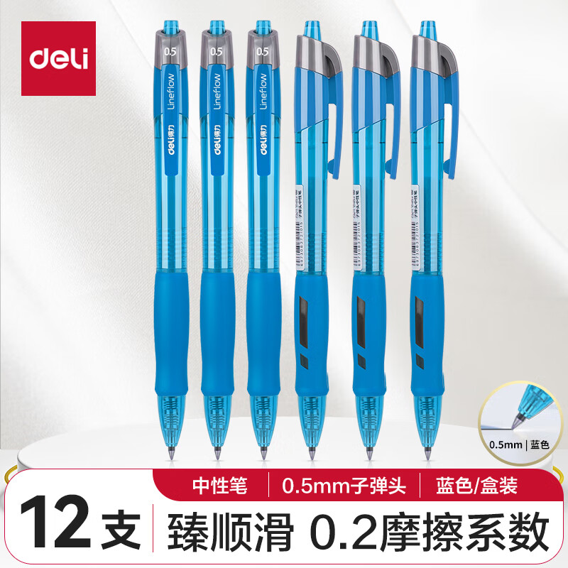 商品名稱:得力S08 臻順滑中性筆 簽字筆 0.5mm子彈頭按動(dòng)筆水筆 辦公用品 12支/盒【順滑之星】