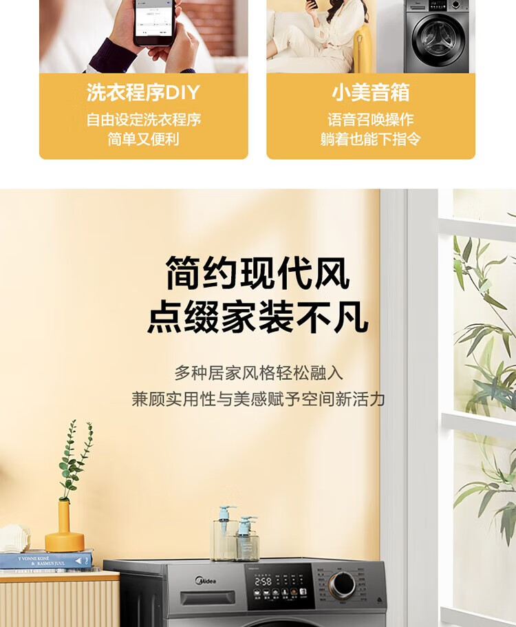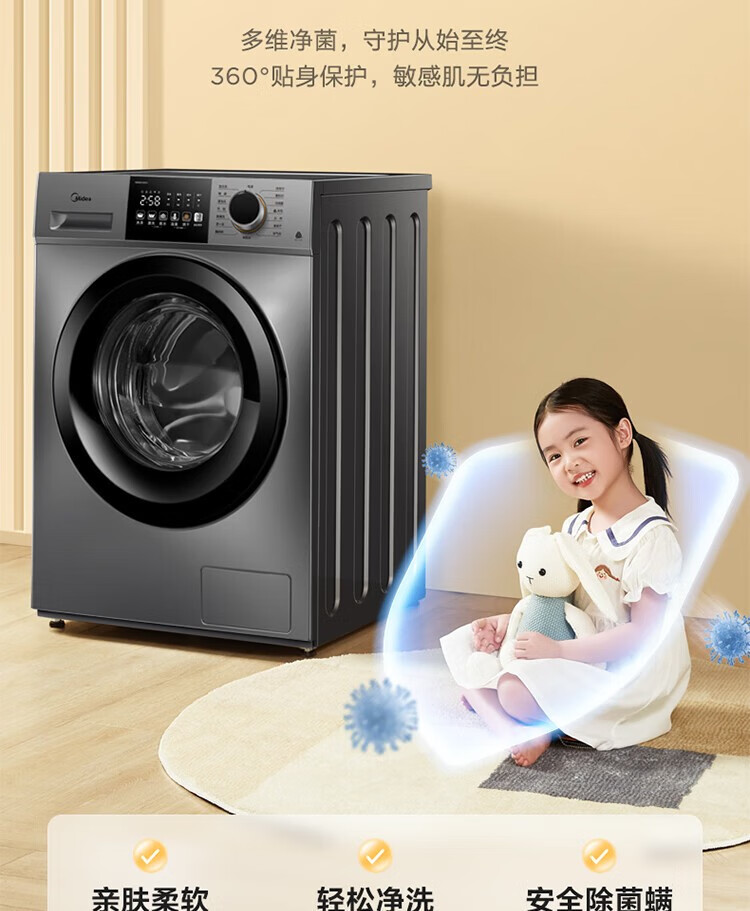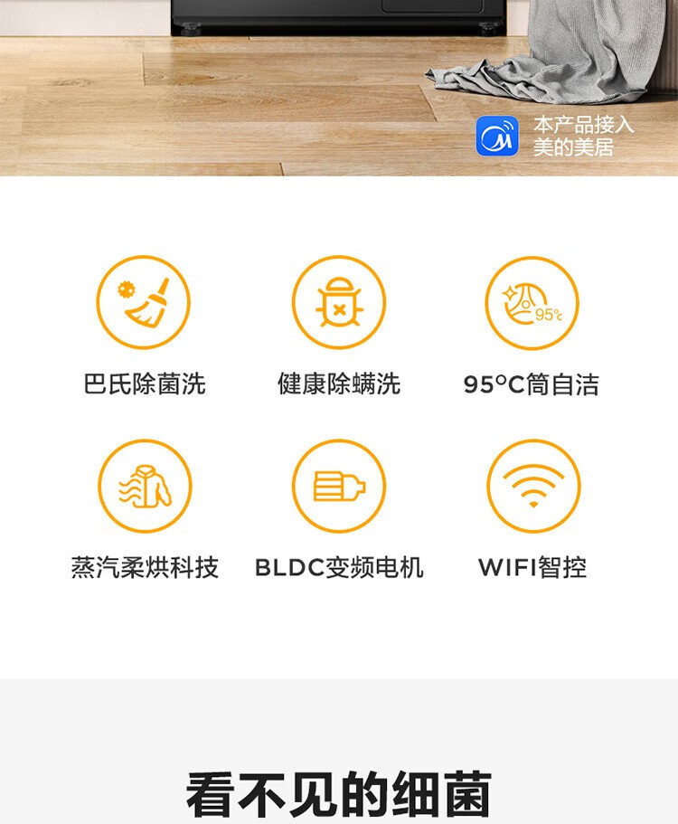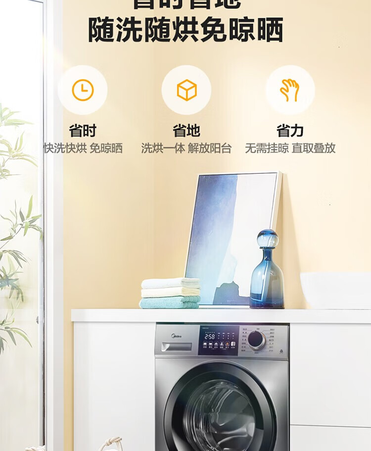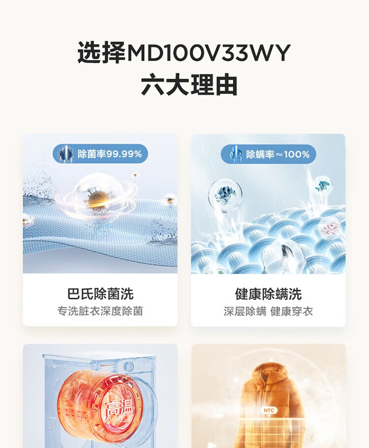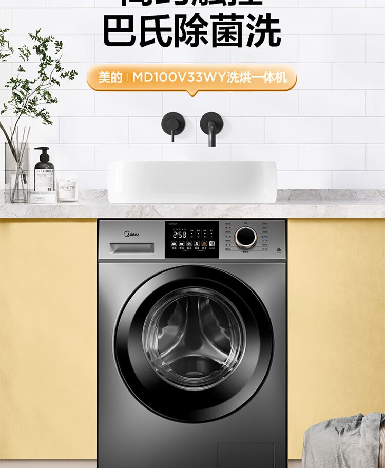 商品名稱:美的MD100V33WY 滾筒洗衣機(jī)全自動(dòng) V33 洗衣機(jī)帶烘干洗烘一體機(jī) 除菌凈螨 簡尚系列 超薄款 10公斤