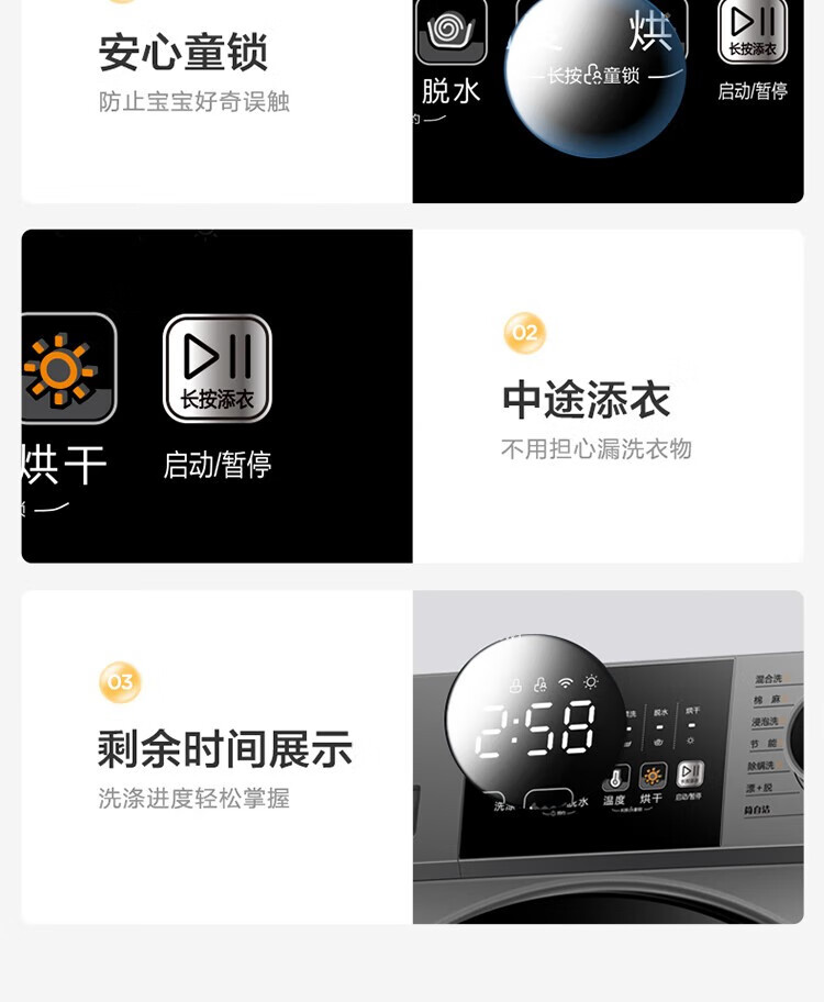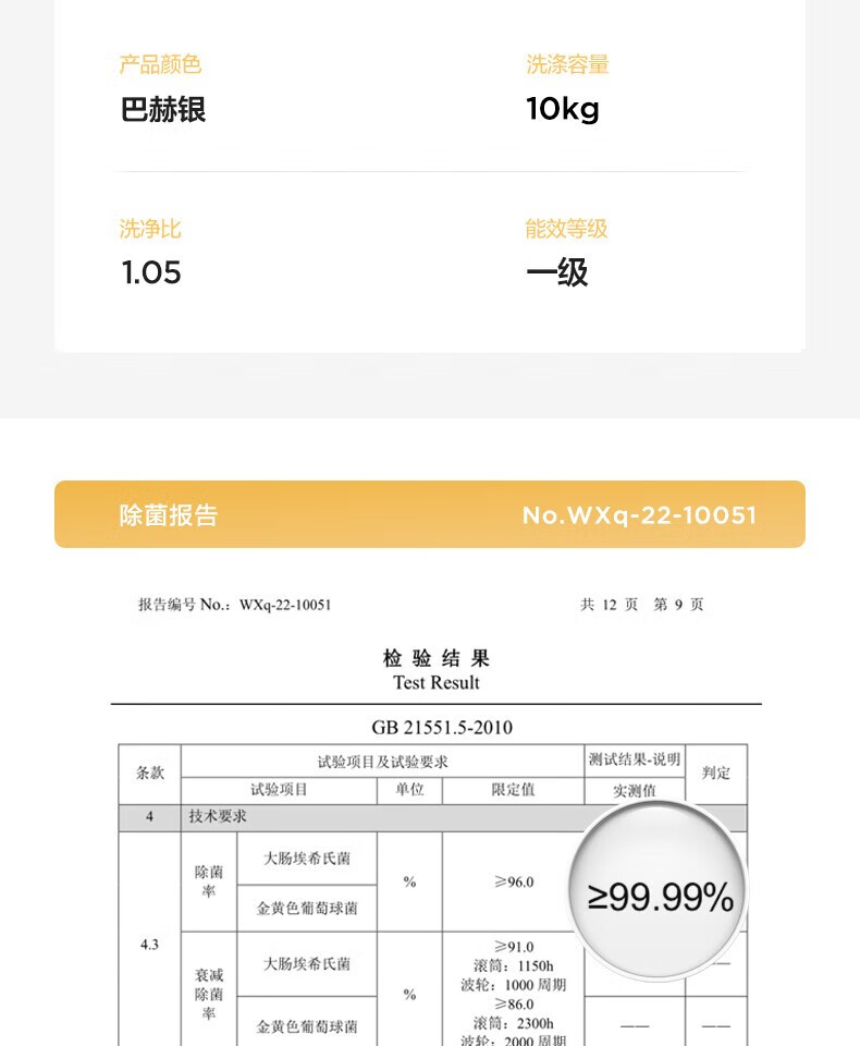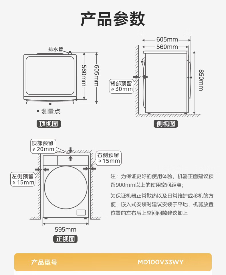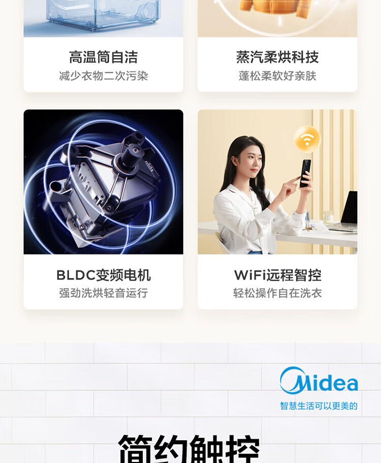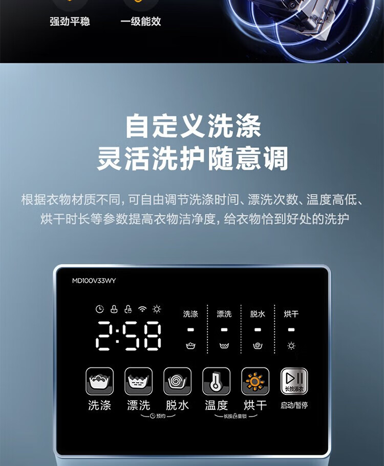 商品名稱:美的MD100V33WY 滾筒洗衣機(jī)全自動(dòng) V33 洗衣機(jī)帶烘干洗烘一體機(jī) 除菌凈螨 簡尚系列 超薄款 10公斤