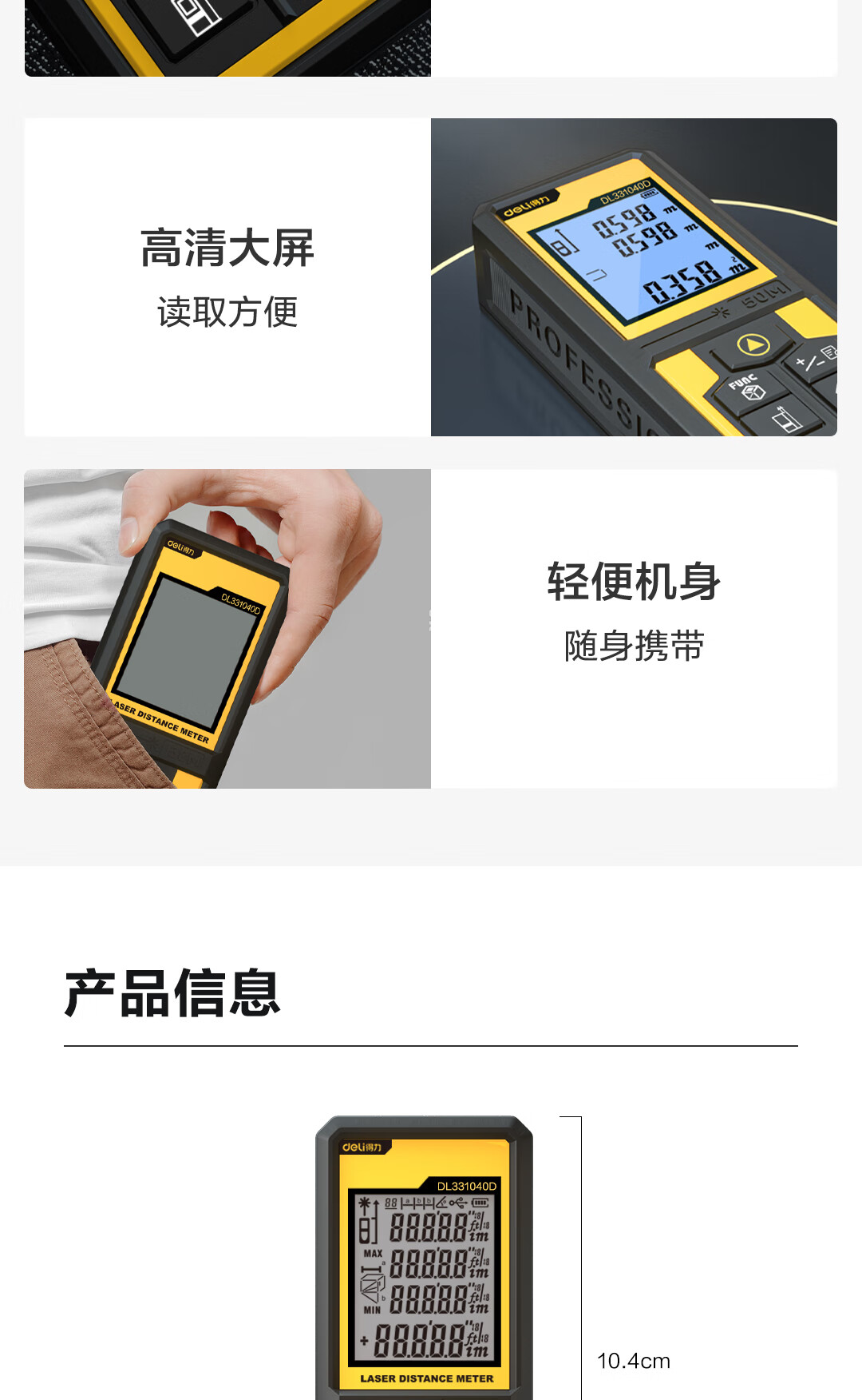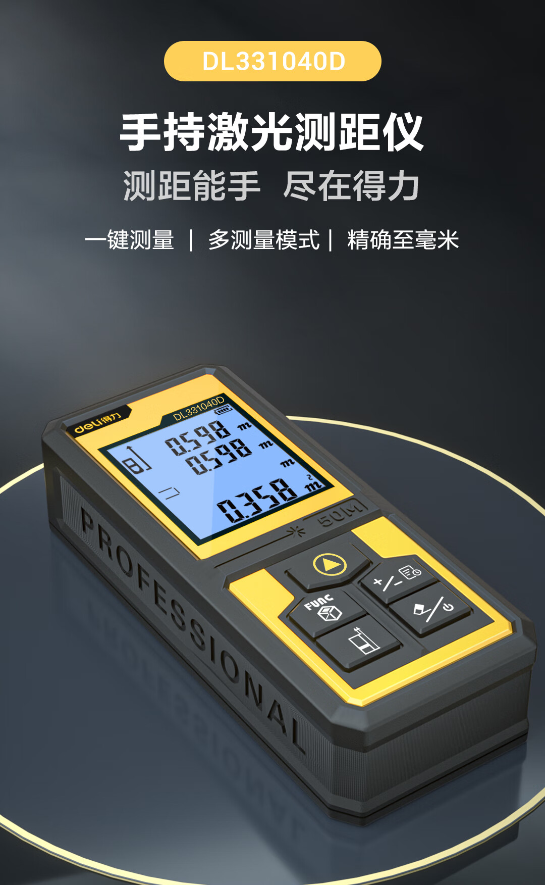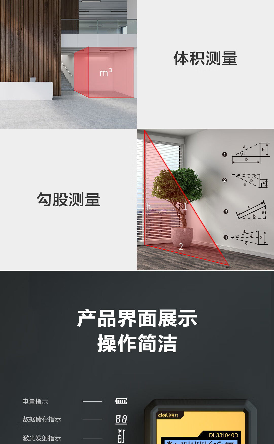 商品名稱:得力DL331040D 測距儀 手持式激光高精度電子尺紅外量房儀50米量程毫米級精度