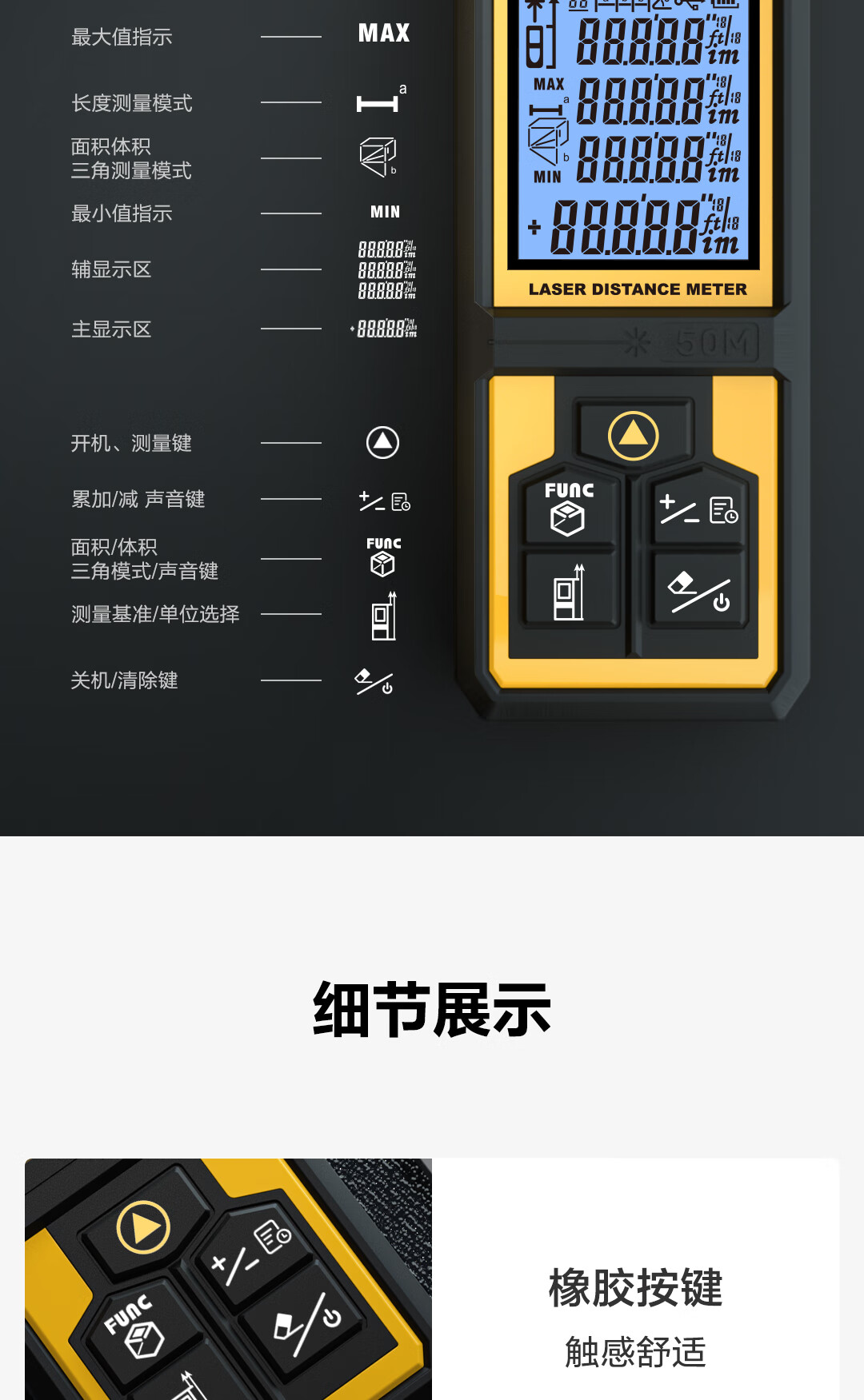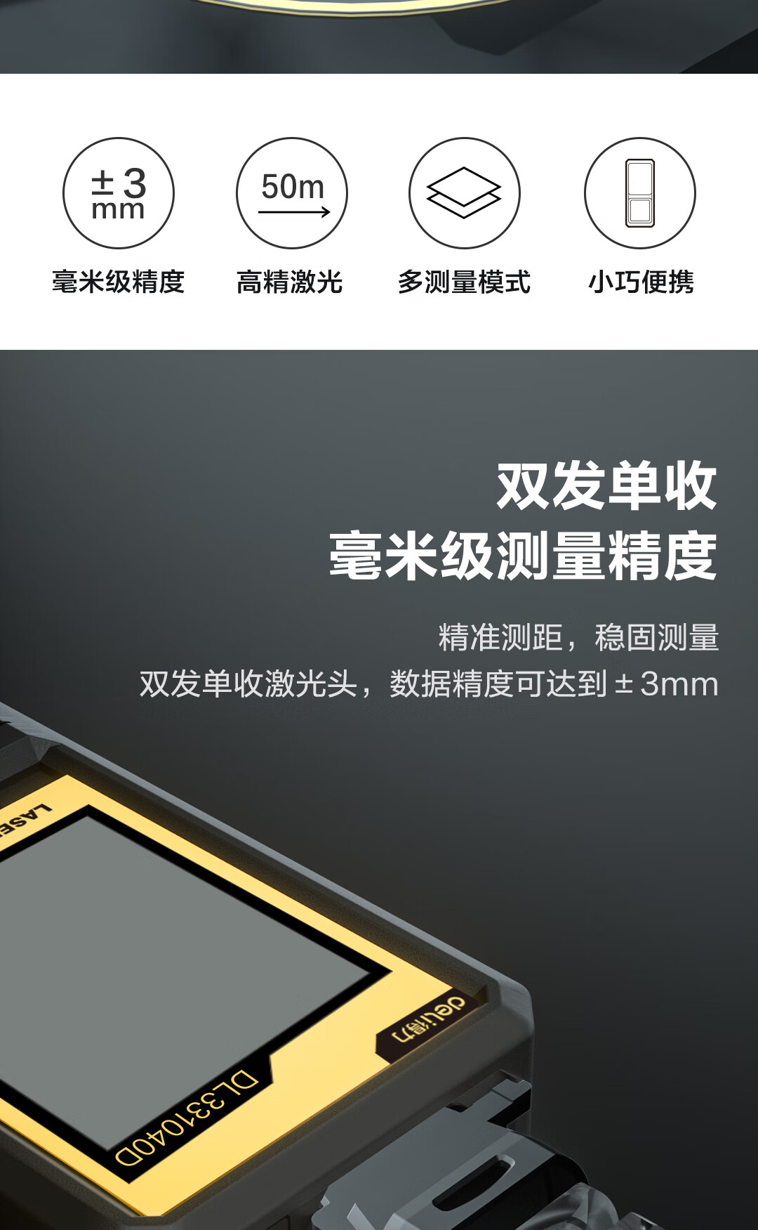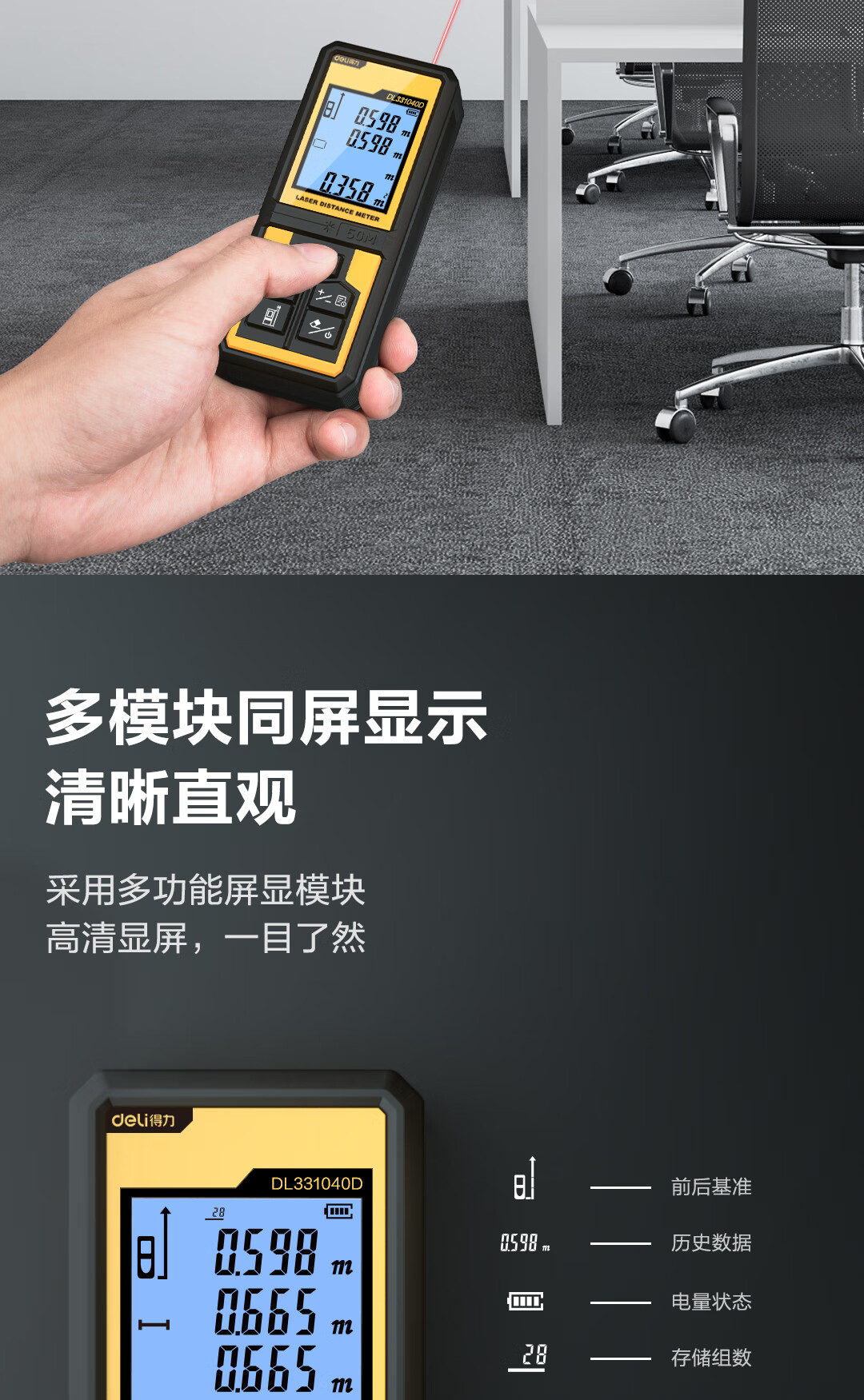 商品名稱:得力DL331040D 測距儀 手持式激光高精度電子尺紅外量房儀50米量程毫米級精度