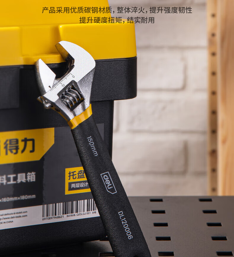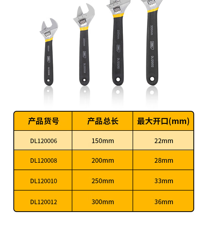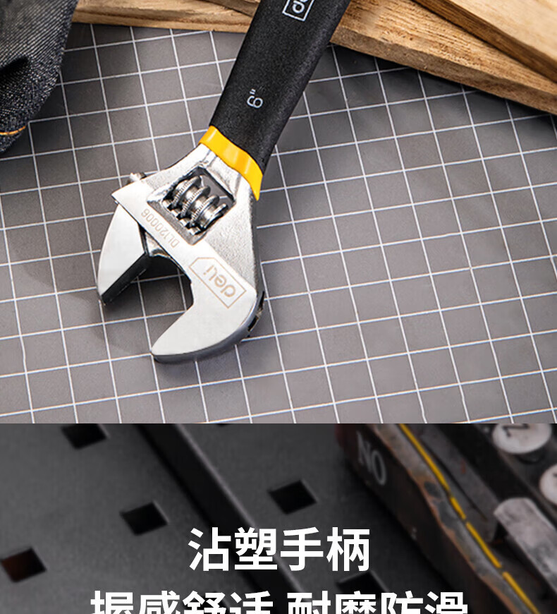 商品名稱:得力DL120006 沾塑柄活動扳手 萬能活口多功能扭力扳手6寸兩用活扳手