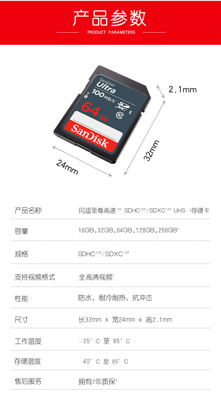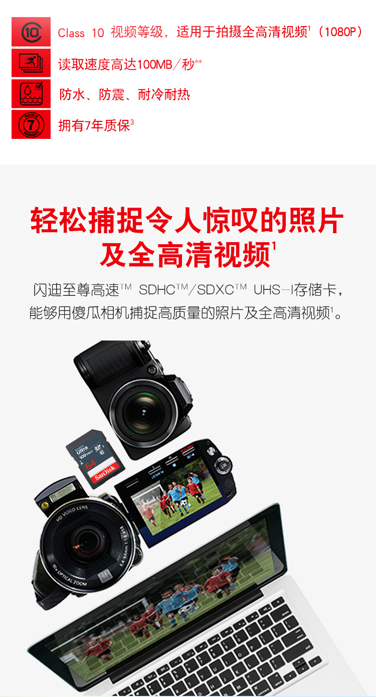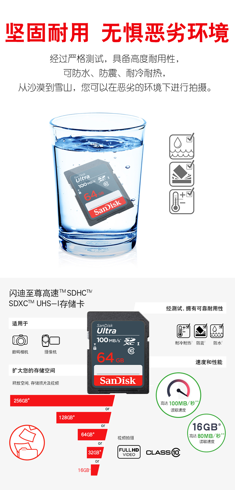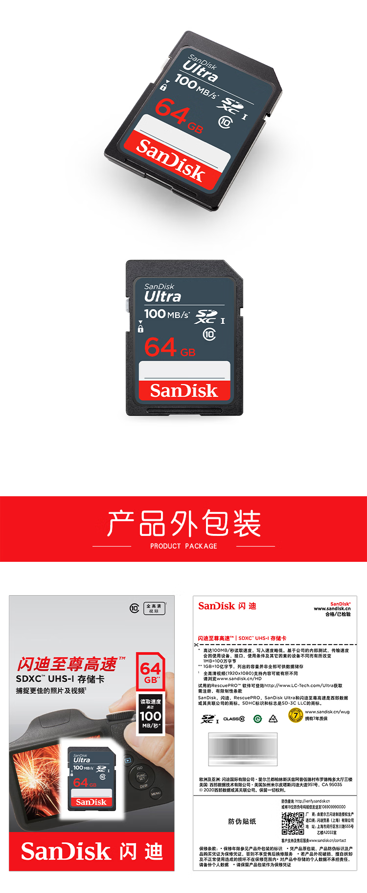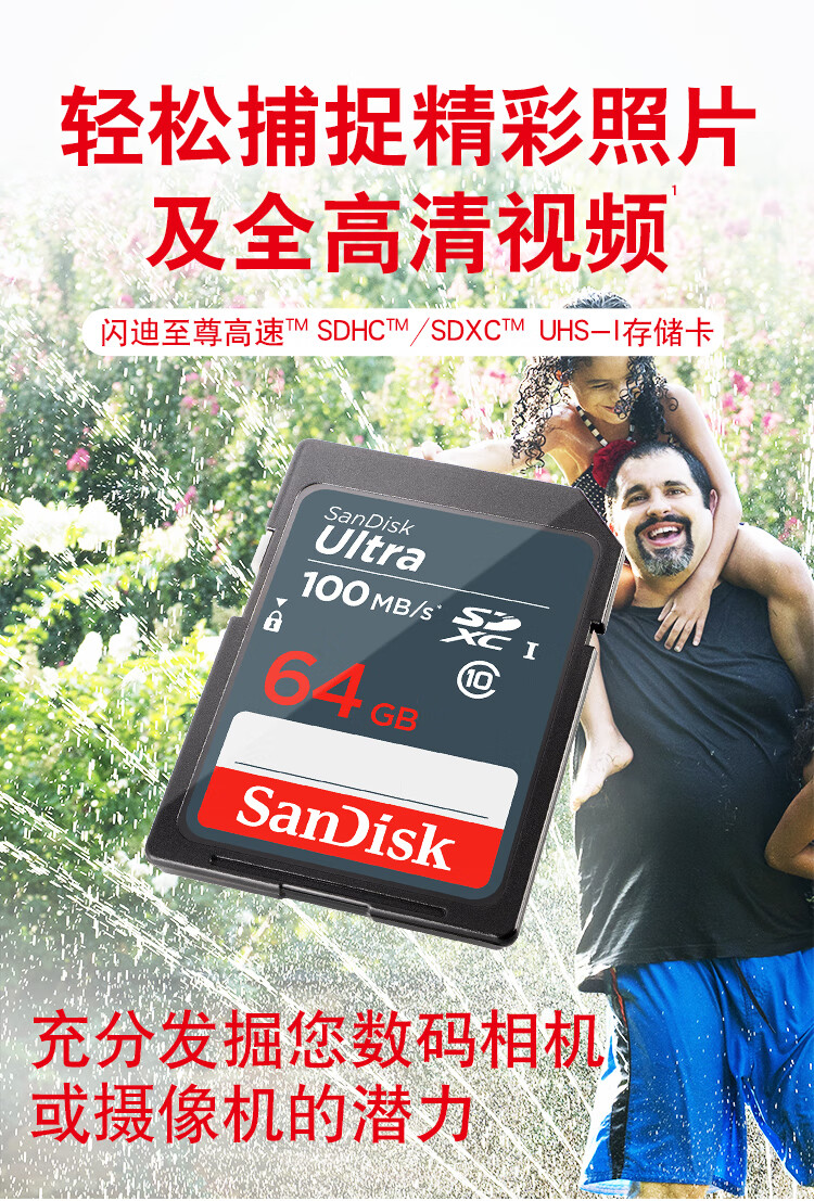 商品名稱:閃迪 64GB SD內(nèi)存卡 至尊高速版讀速100MB/s 數(shù)碼相機(jī) 攝像機(jī)存儲(chǔ)卡 支持高清視頻