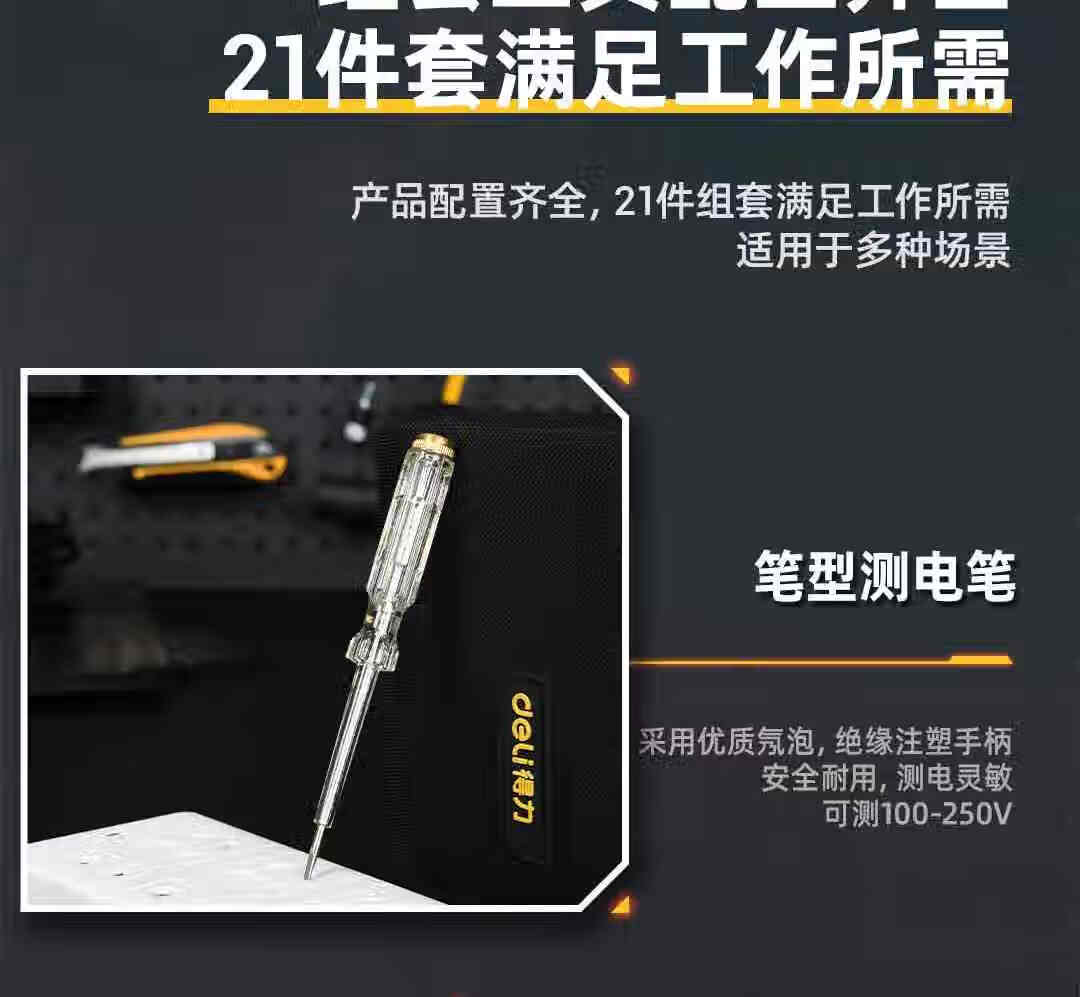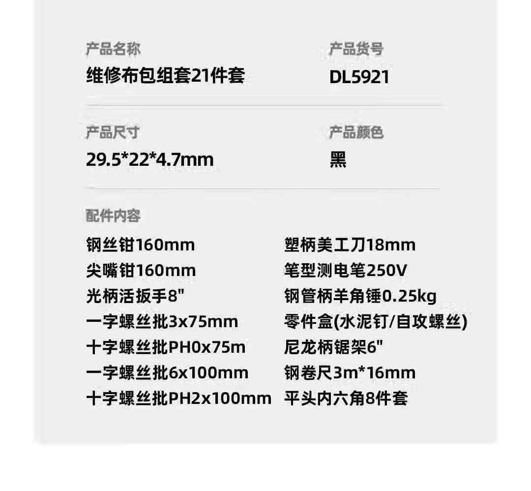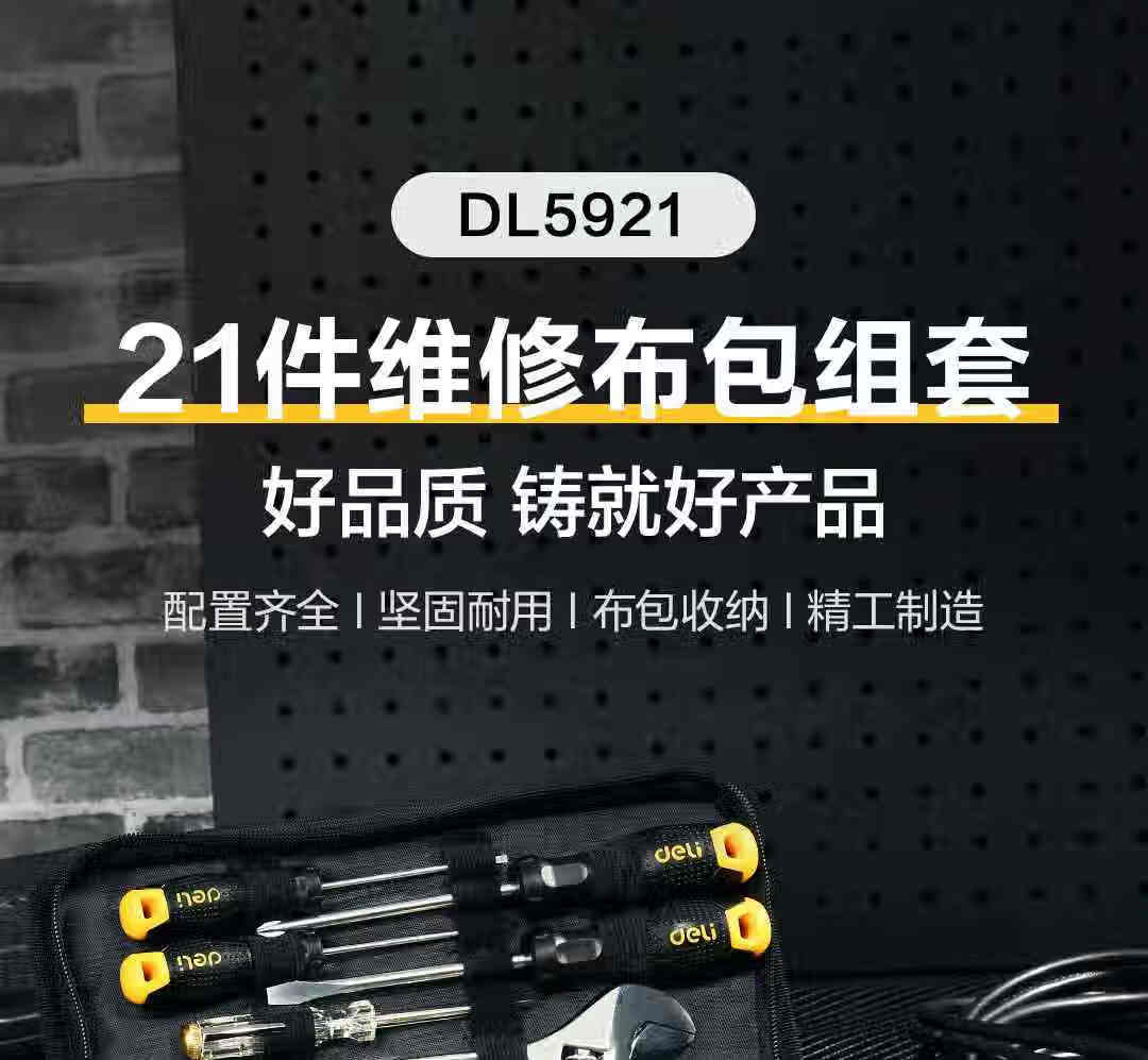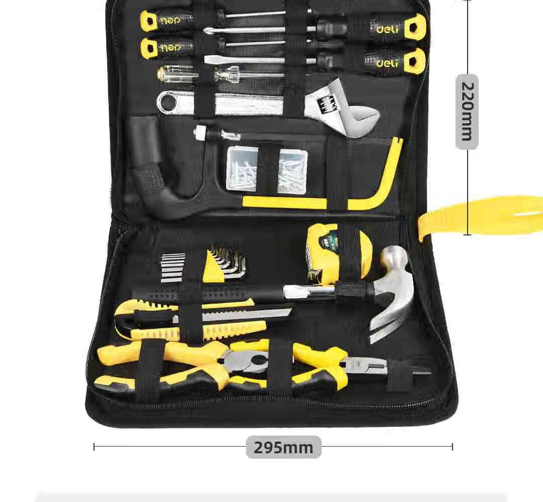 商品名稱:得力DL5921 家用工具箱套裝 布包組套電工木工維修五金手動工具21件套