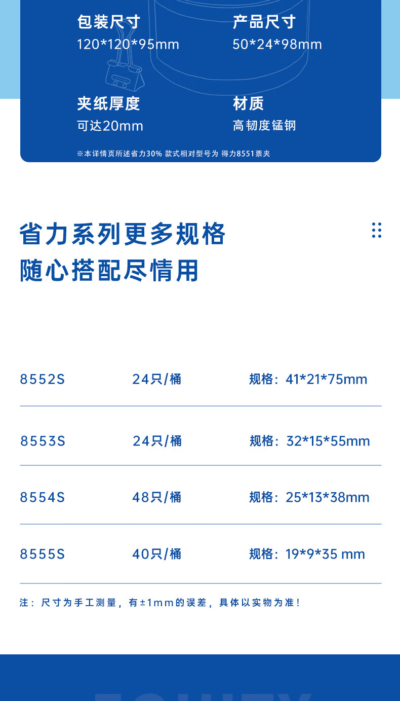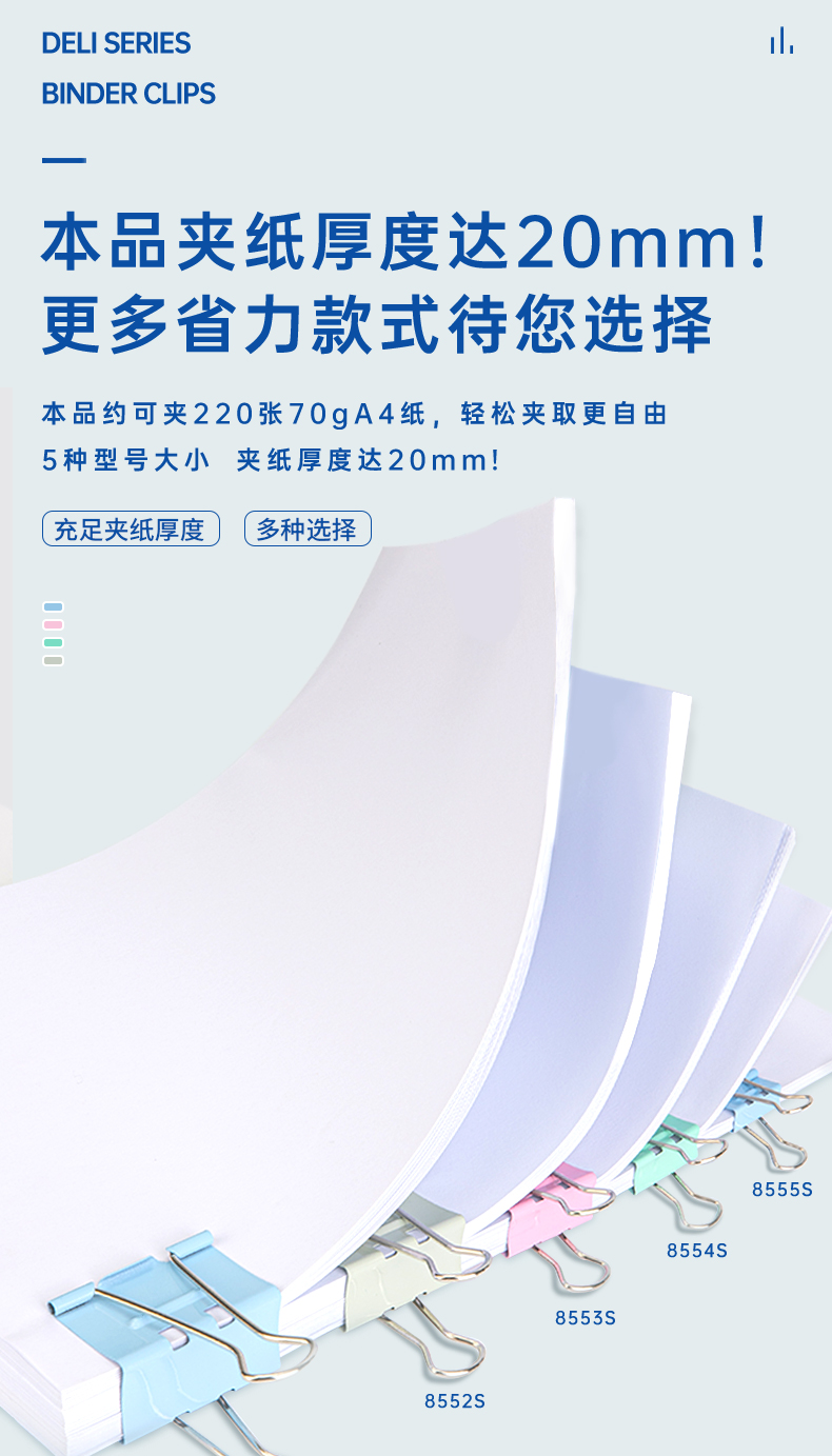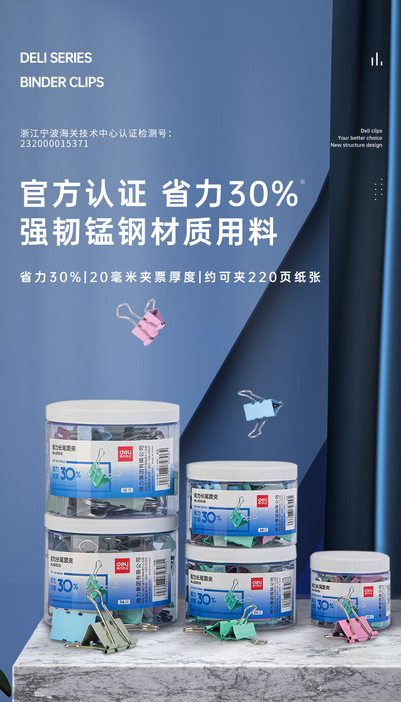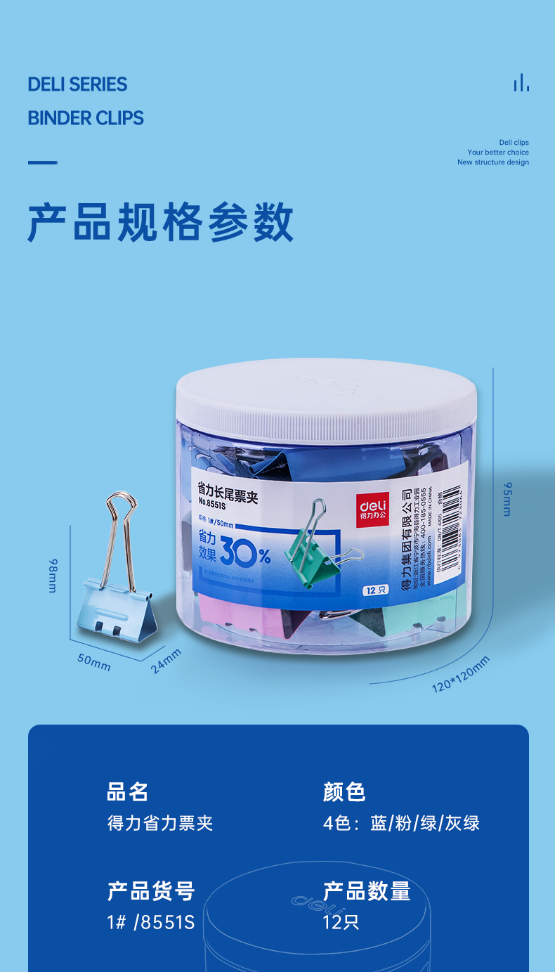 商品名稱:得力8551S 省力長尾夾 1#50mm超大號(hào)金屬票夾燕尾夾票據(jù)文件夾子 辦公用品 12只/筒
