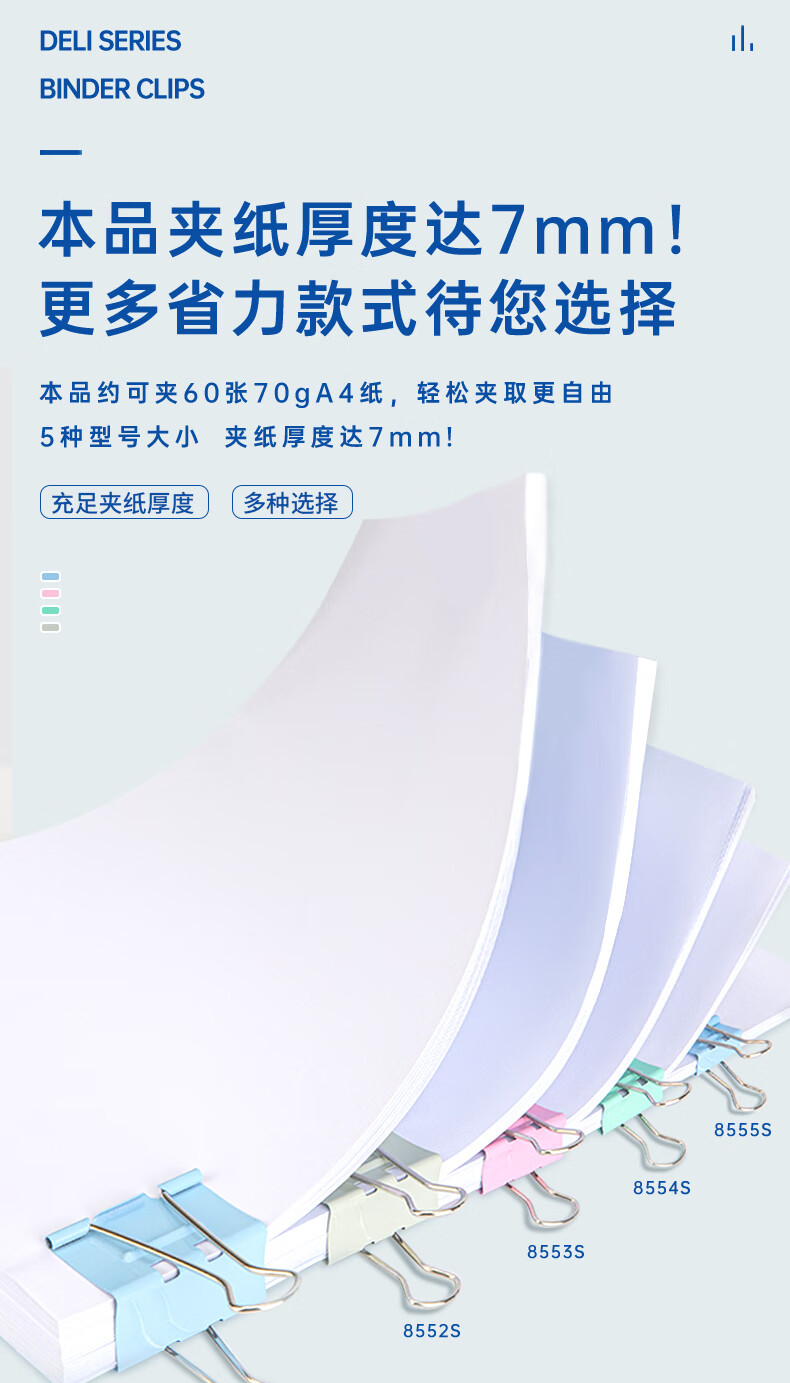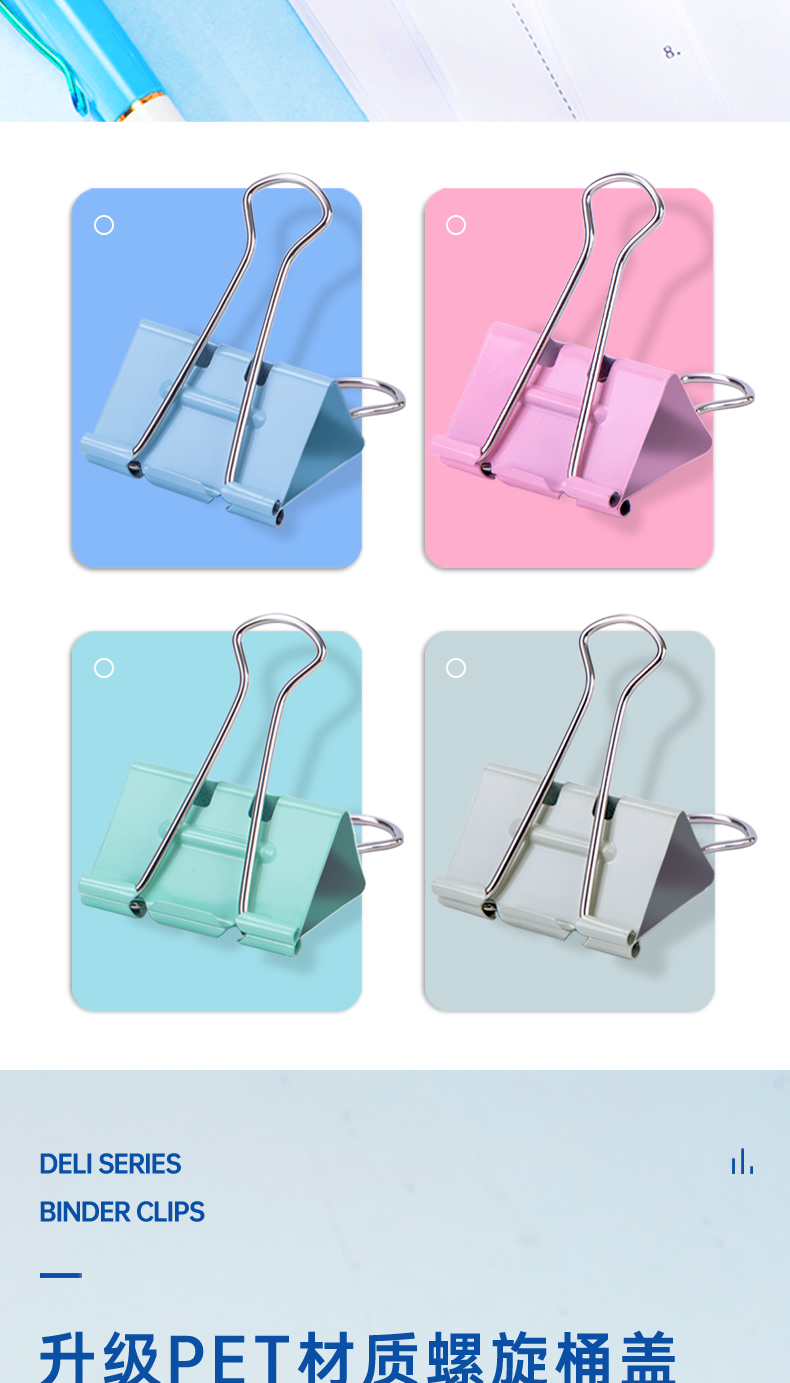 商品名稱:得力8555S 省力長尾夾 5#19mm彩色金屬票夾燕尾夾票據(jù)夾子 辦公用品 40只/筒