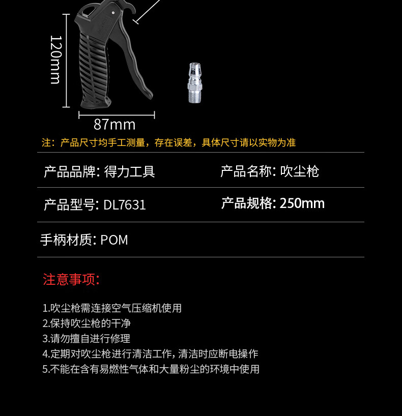 商品名稱:得力DL7631 長(zhǎng)嘴款高壓空氣吹塵槍 去污吹氣吹風(fēng)槍除塵吹塵槍350L/min