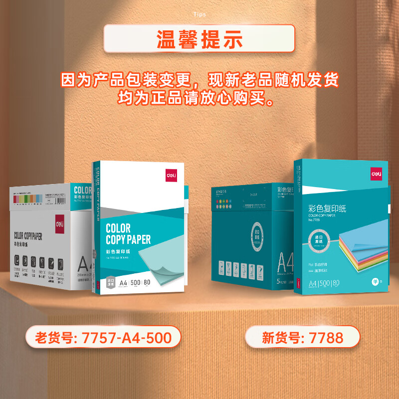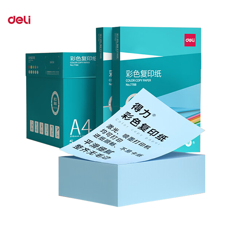 商品名稱:得力7788 彩紙復印紙 80g/A4非厚卡紙兒童手工紙打印紙 5包/箱 (2500張/箱)