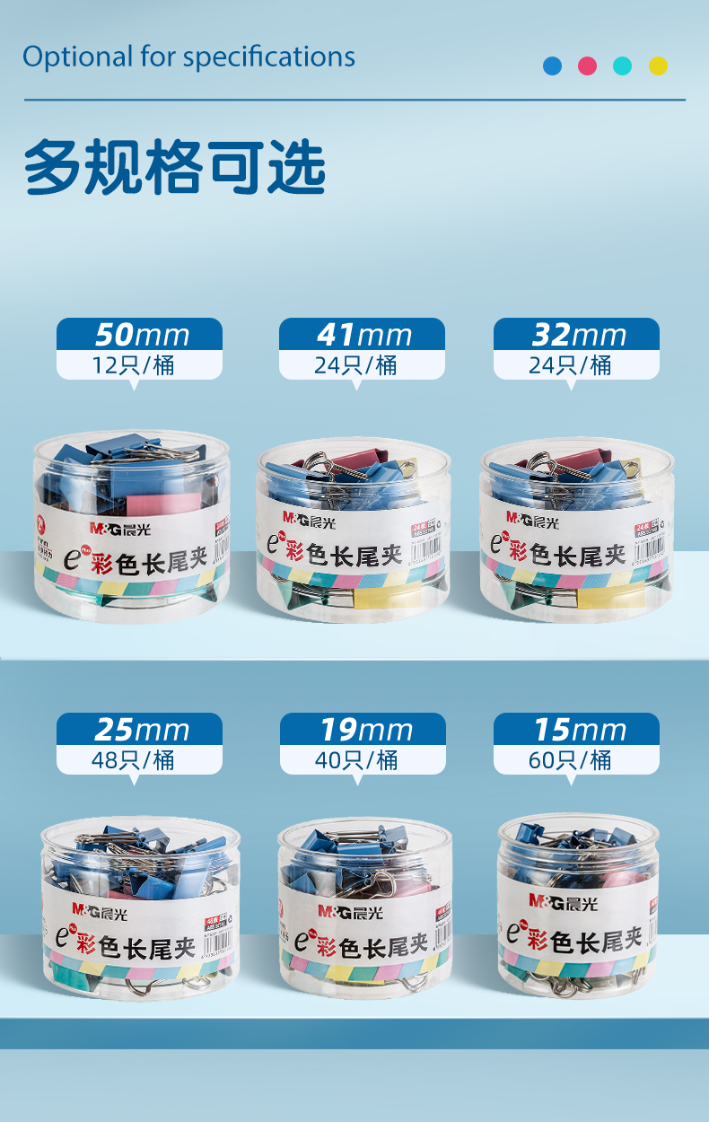 商品名稱:晨光ABS92738 彩色長(zhǎng)尾夾 50mm金屬票據(jù)夾 Eplus系列辦公燕尾夾 12只/罐