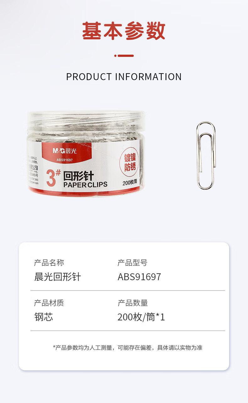 商品名稱:晨光ABS91697 鍍鎳回形針 3#金屬防銹曲別針 辦公用品 200枚/盒