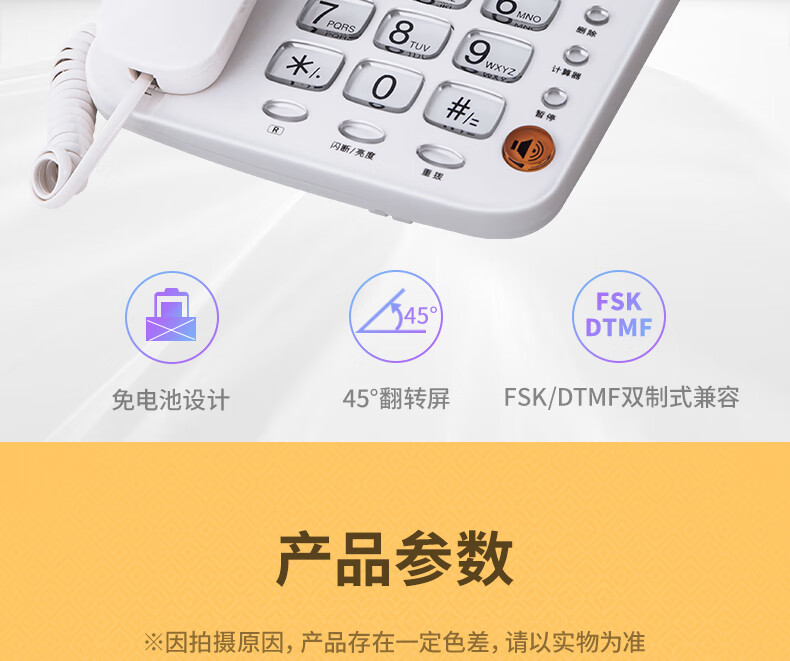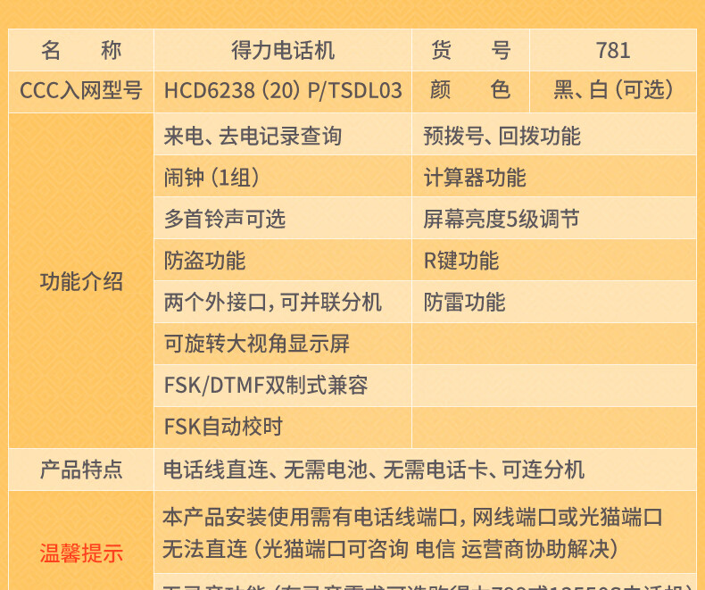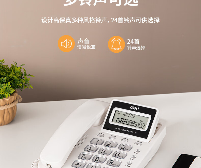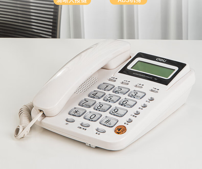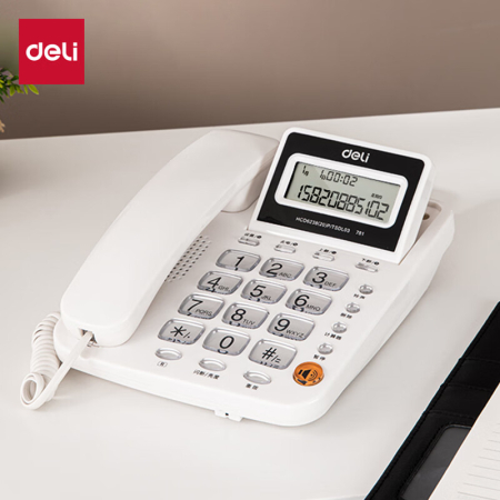 商品名稱:得力 電話機(jī)座機(jī) 固定電話 辦公家用 翻轉(zhuǎn)屏幕 免電池 781白