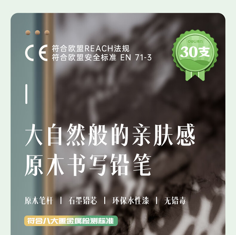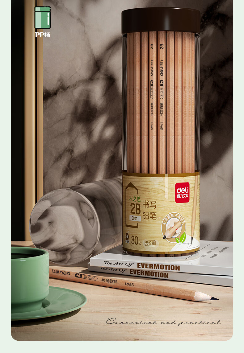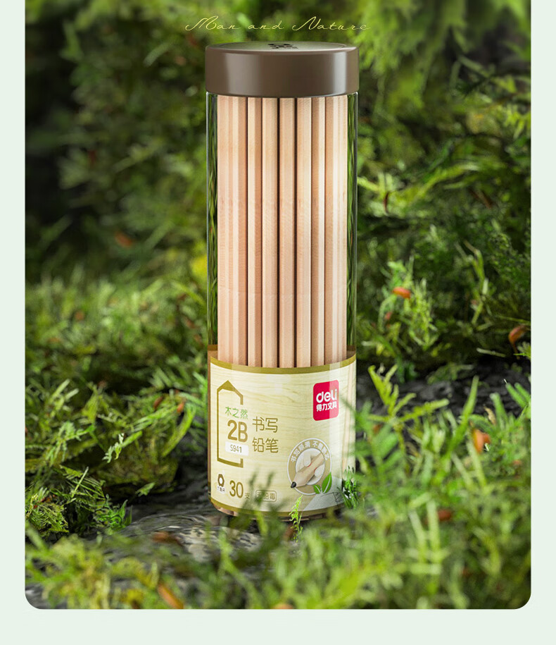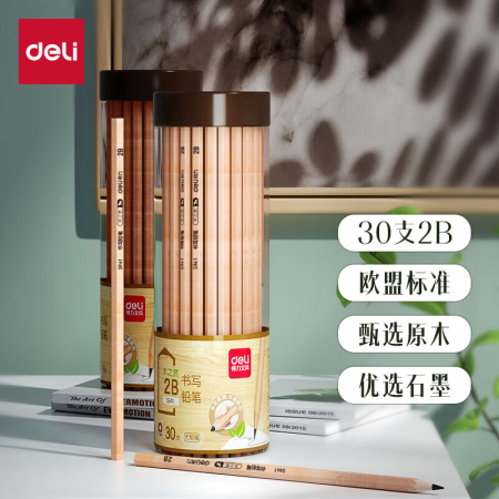 商品名稱:得力S941 鉛筆 木之然系列2B六角筆桿書寫繪畫素描鉛筆 30支/桶