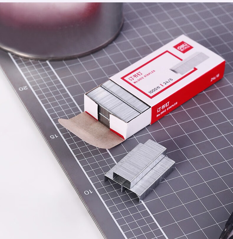 商品名稱:得力0012 高強(qiáng)度訂書釘 12#24/6訂書針 可訂25頁(yè) 1000枚/盒