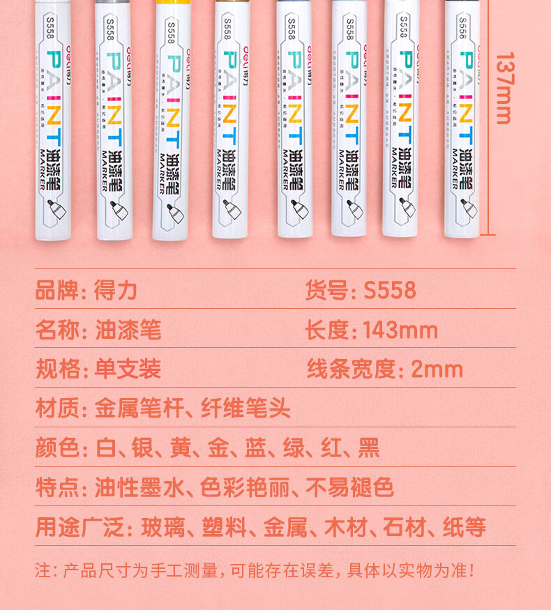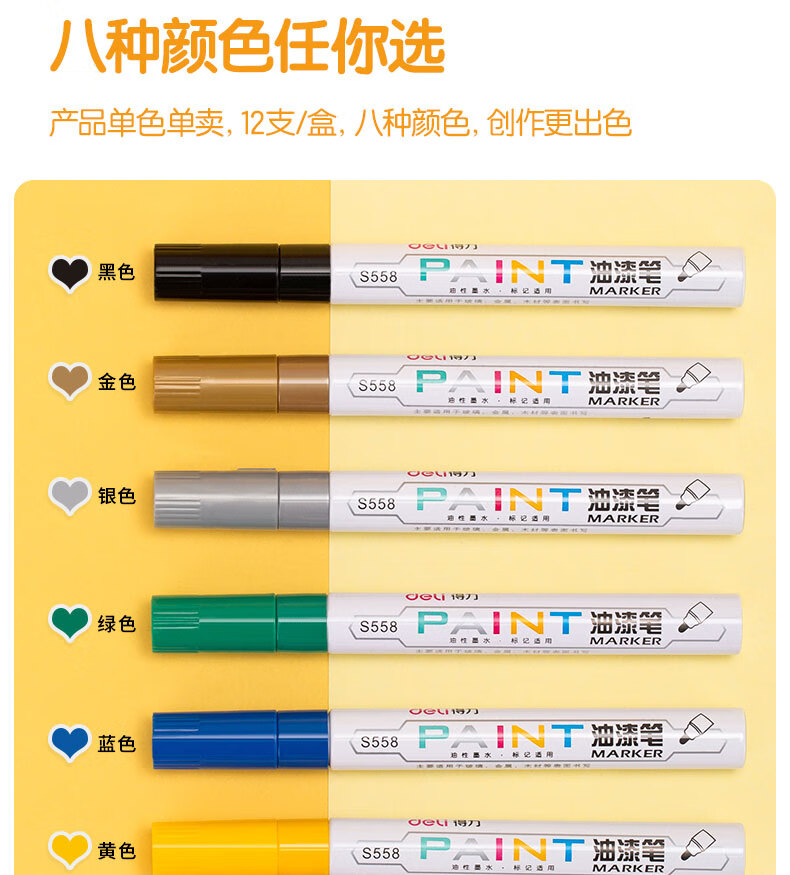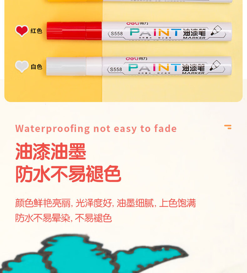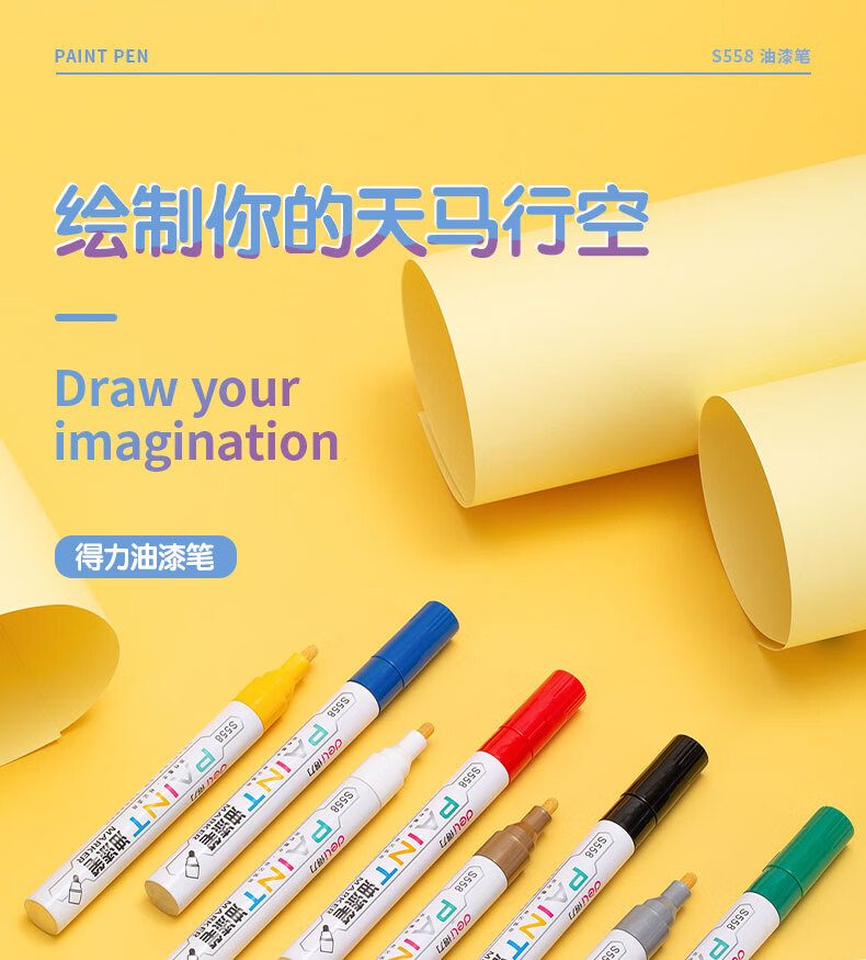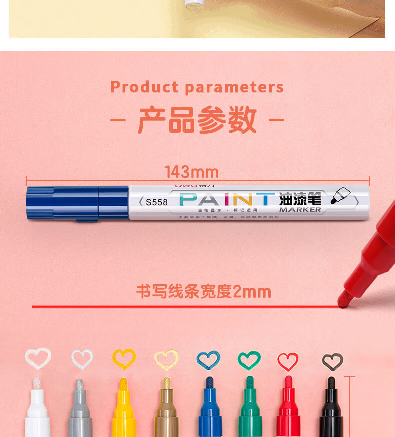 商品名稱(chēng):得力S558 油漆筆 粗桿修補(bǔ)記號(hào)筆 手繪涂鴉筆 2.0mm防水不掉色簽名筆簽到筆 單支裝