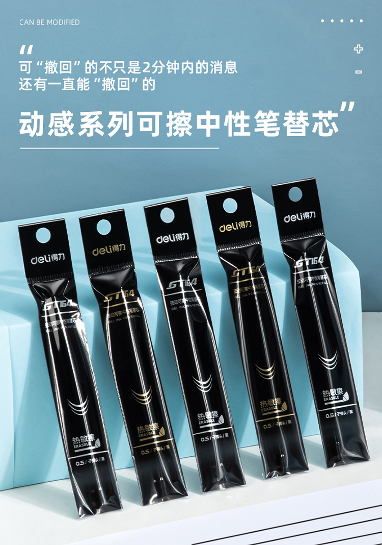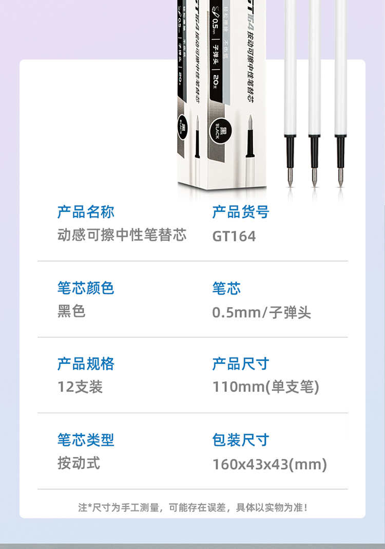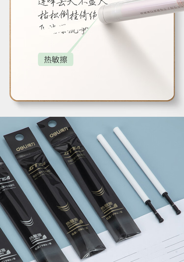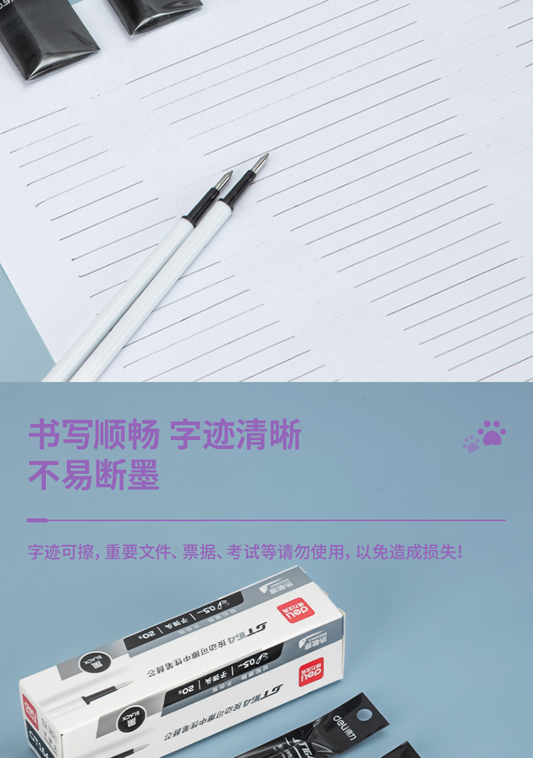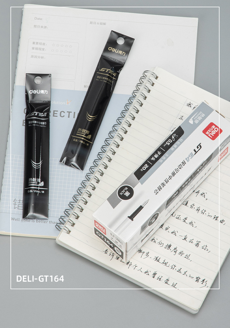 商品名稱:得力GT164 可擦按動中性筆芯 0.5mm子彈頭簽字筆水筆替芯 黑色 20支/盒