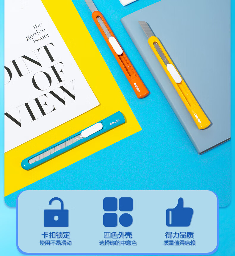 商品名稱:得力2025 小號(hào)美工刀 手工課裁剪刀 切紙刀 顏色隨機(jī) 單把裝