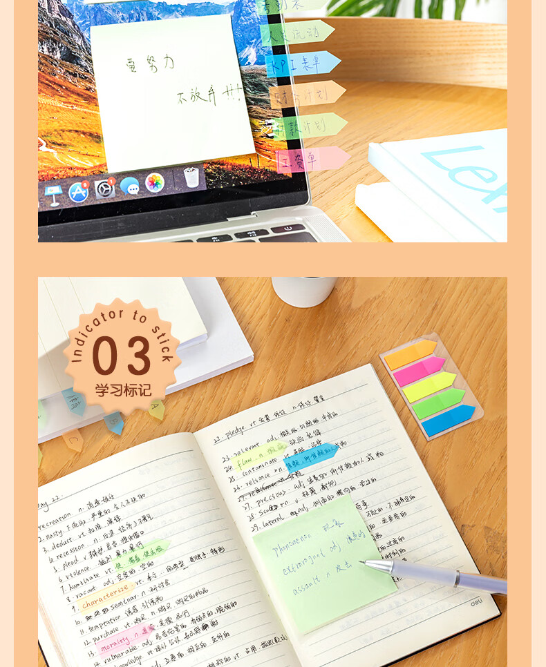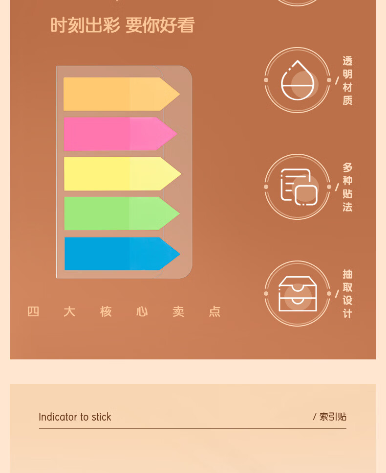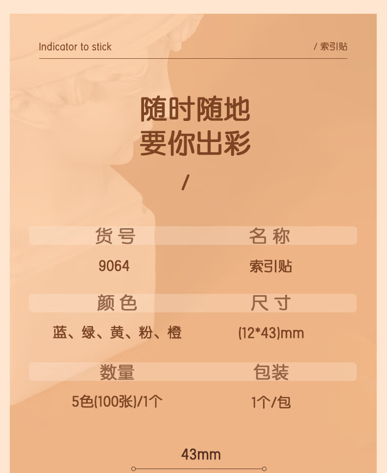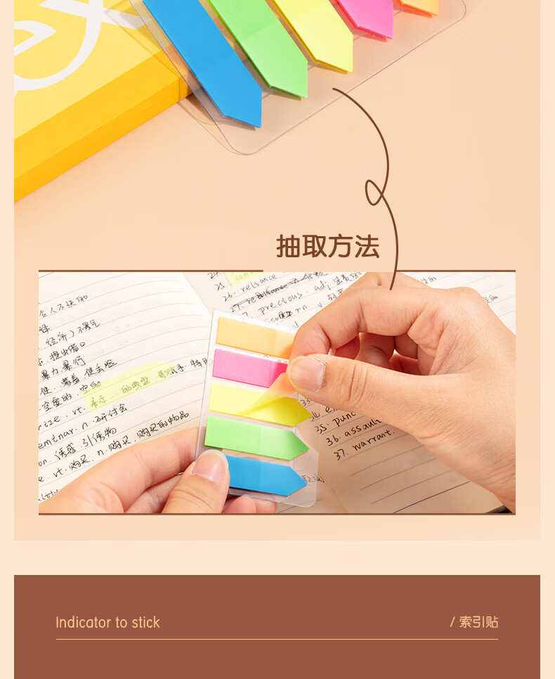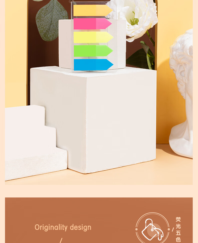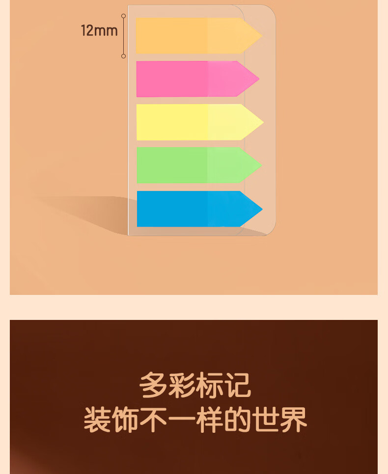 商品名稱:得力9064 箭頭指示標簽貼 5色熒光膜分類索引便利貼記事貼43*12mm 100張/包