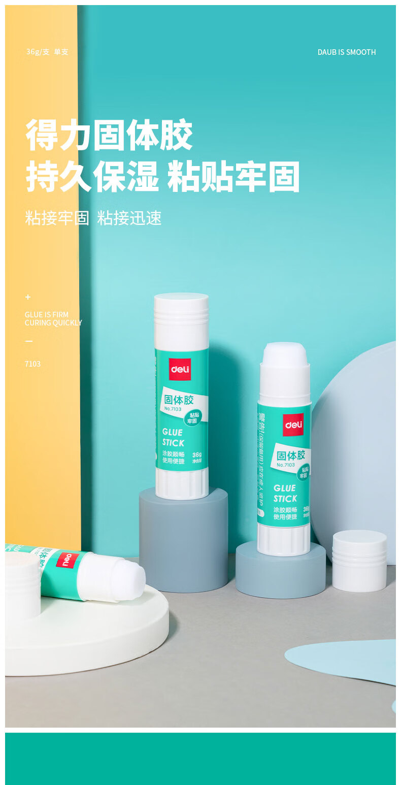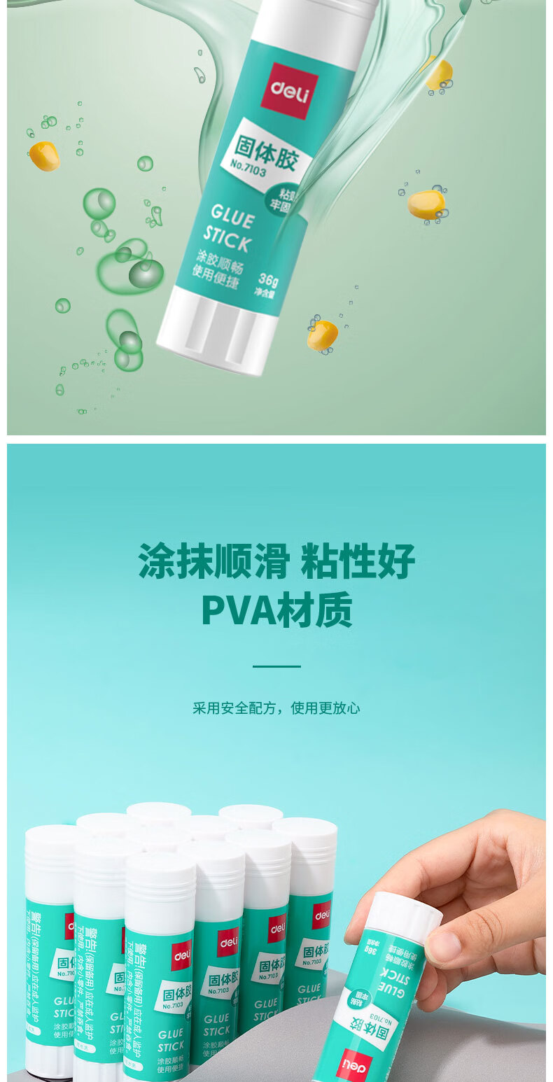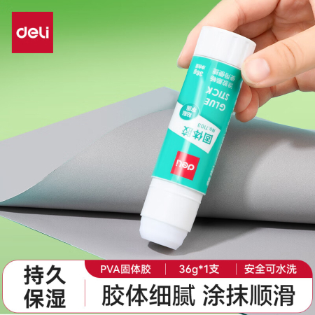 商品名稱:得力7103 固體膠水 36g高粘度PVA膠棒 速干耐用可水洗膠棒 單支裝