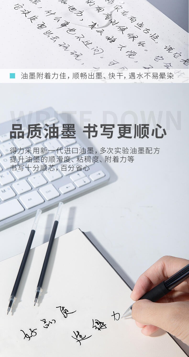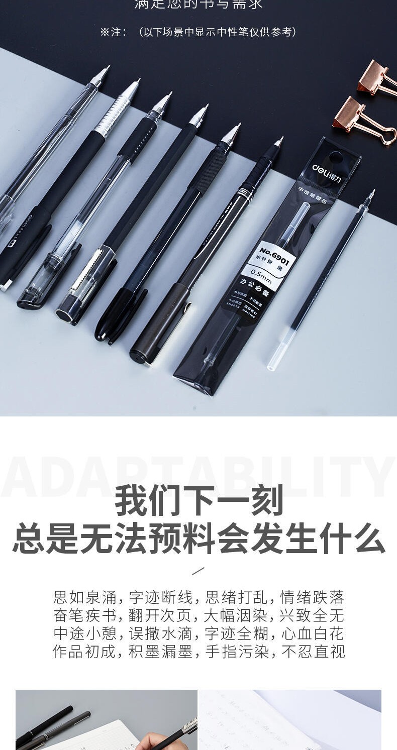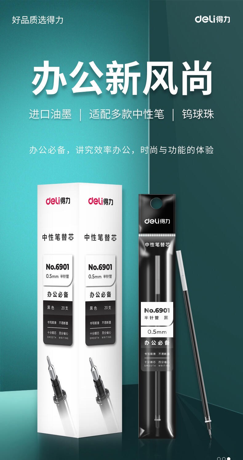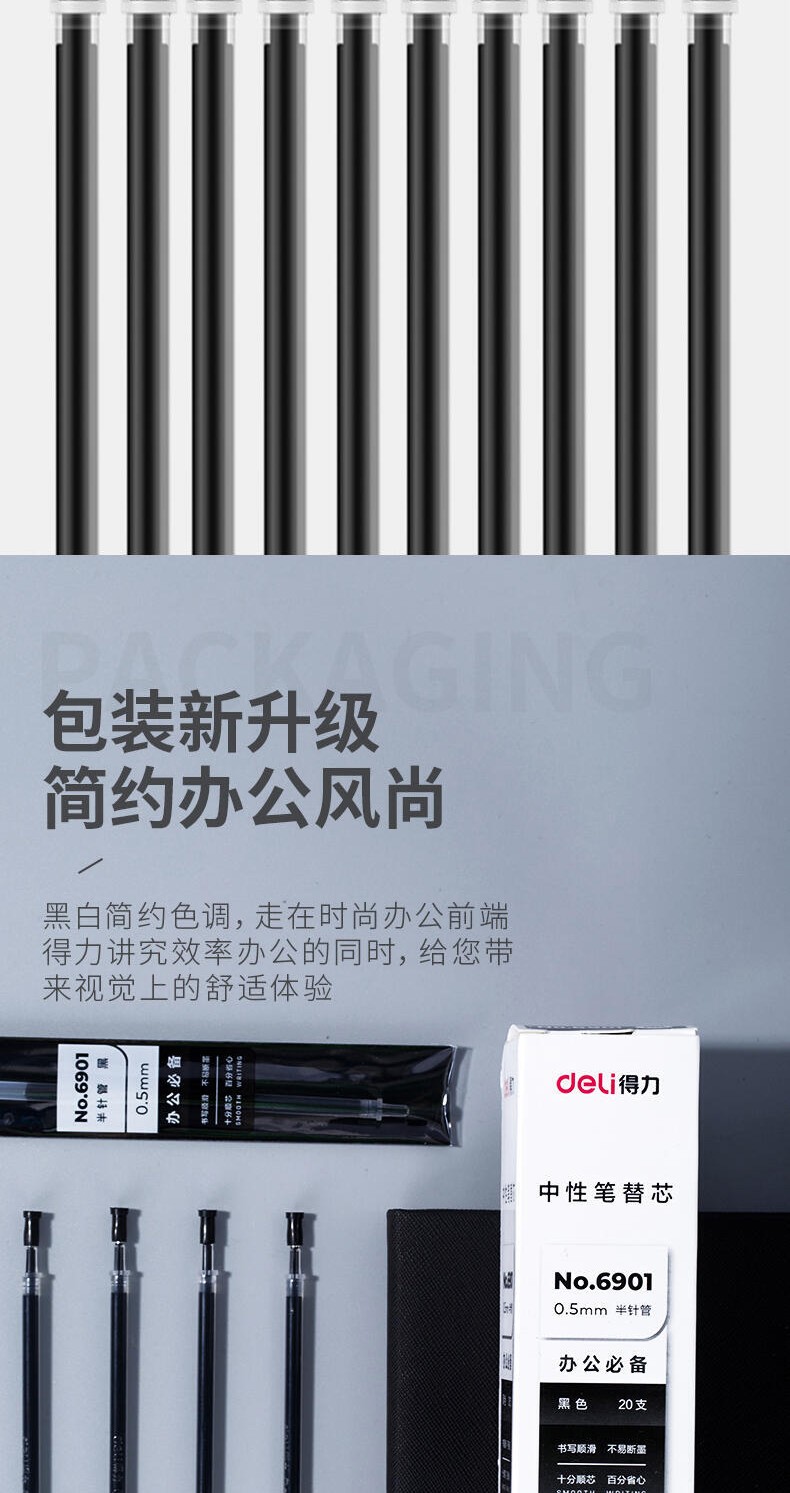 商品名稱:得力6901 筆芯 0.5mm半針管中性筆水筆簽字筆替芯 辦公用品 20支/盒