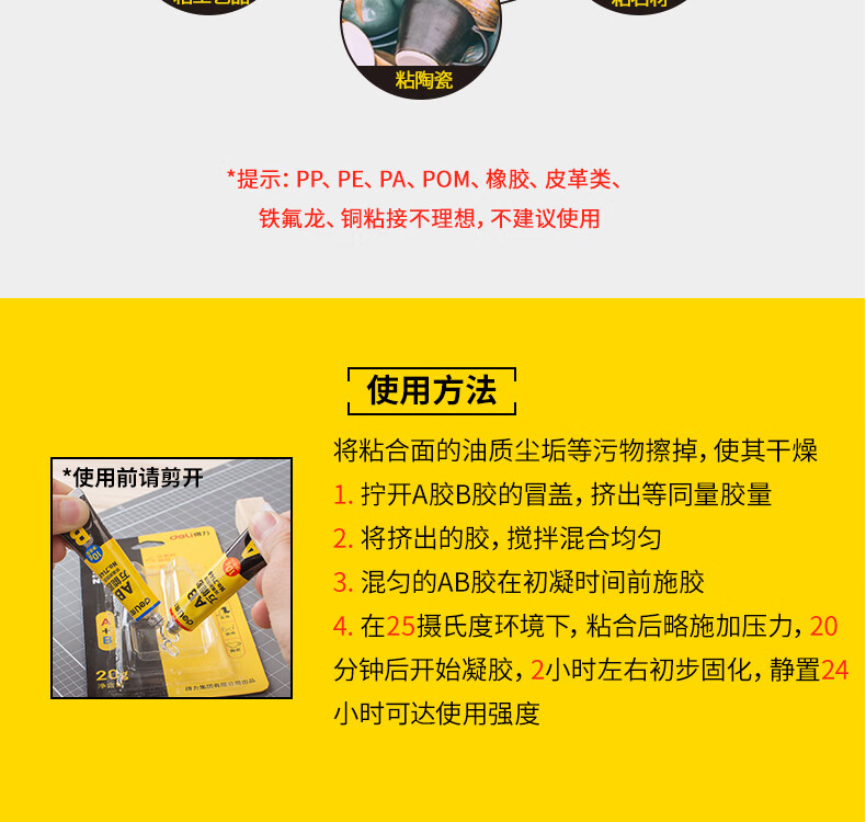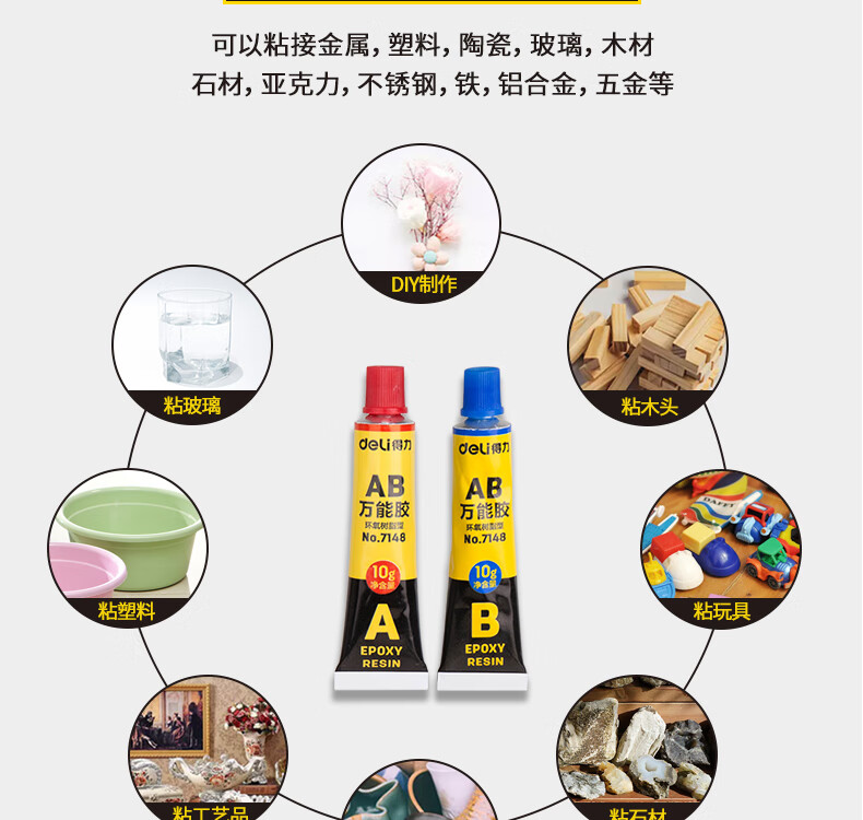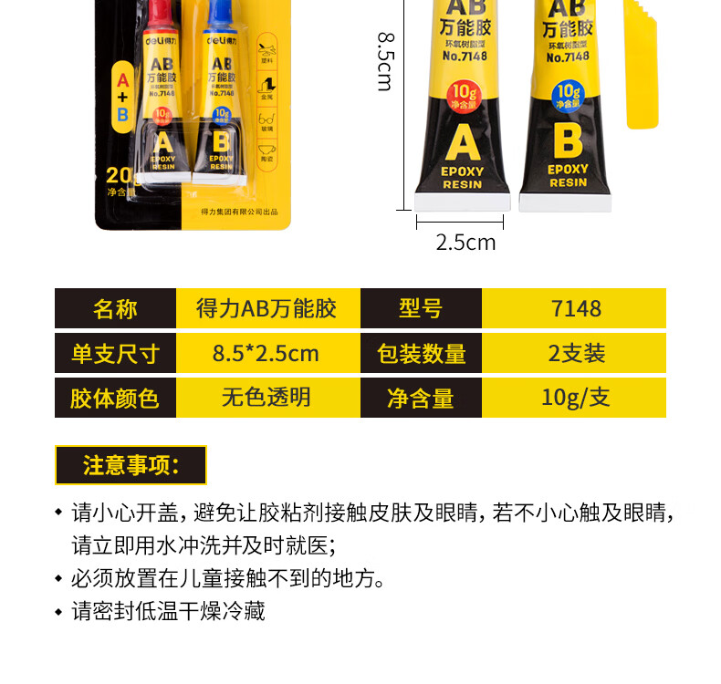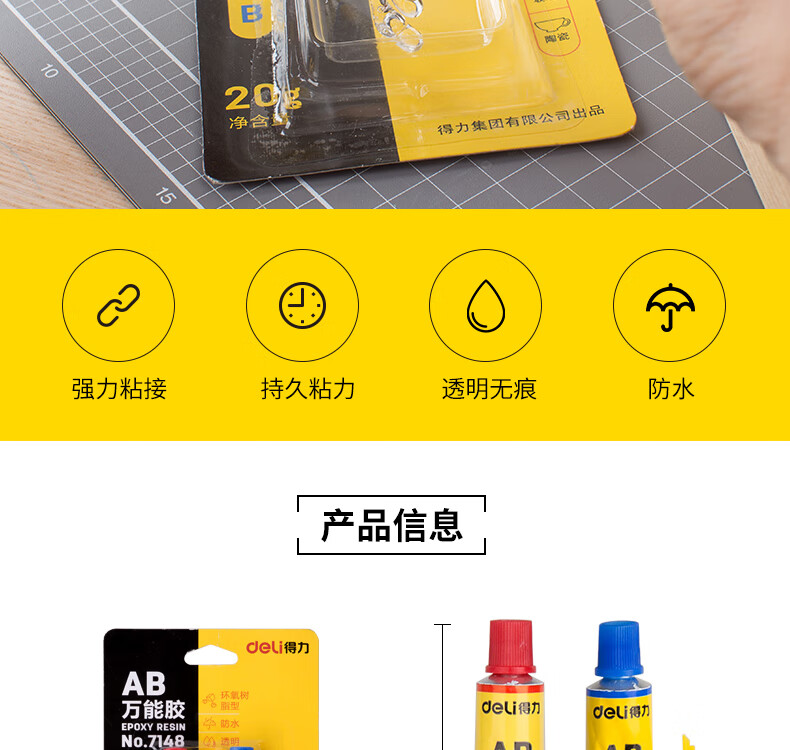 商品名稱:得力7148 AB膠 20g萬(wàn)能膠粘劑 單位:卡