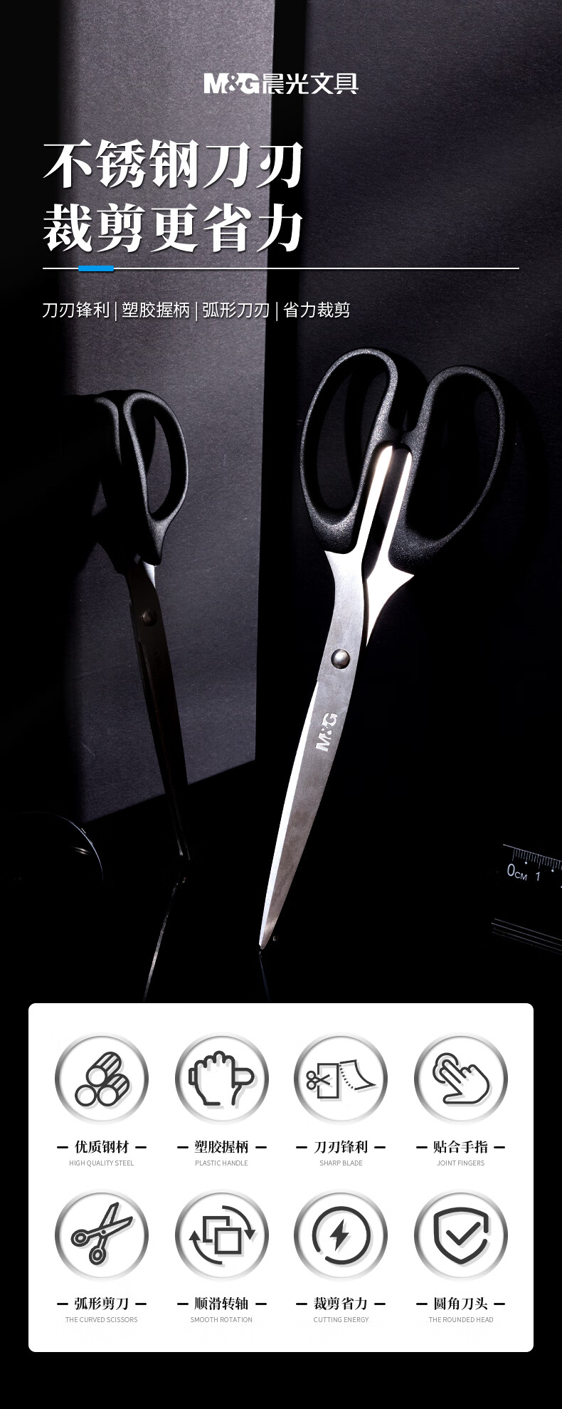 商品名稱:晨光ASSN2261 剪刀 210mm大號(hào)手工剪紙刀 辦公用品 黑色 單把裝