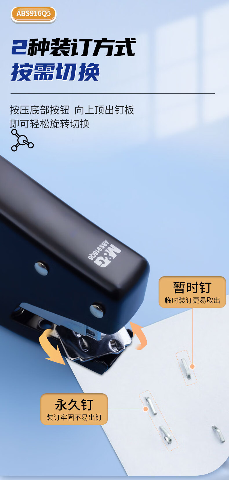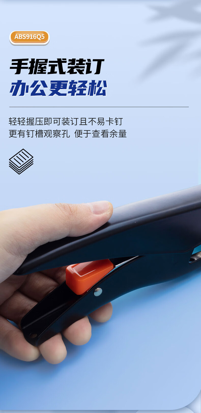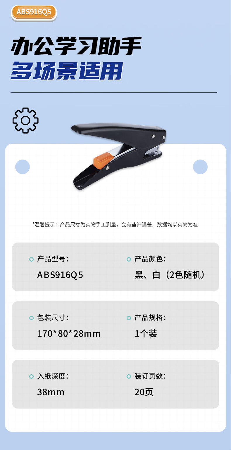 商品名稱:晨光ABS916Q5 12#訂書機(jī) 手握式彈出式省力訂書器 小型辦公用品 單個(gè)裝 顏色隨機(jī)