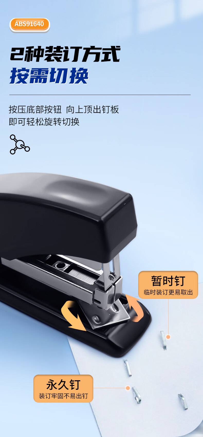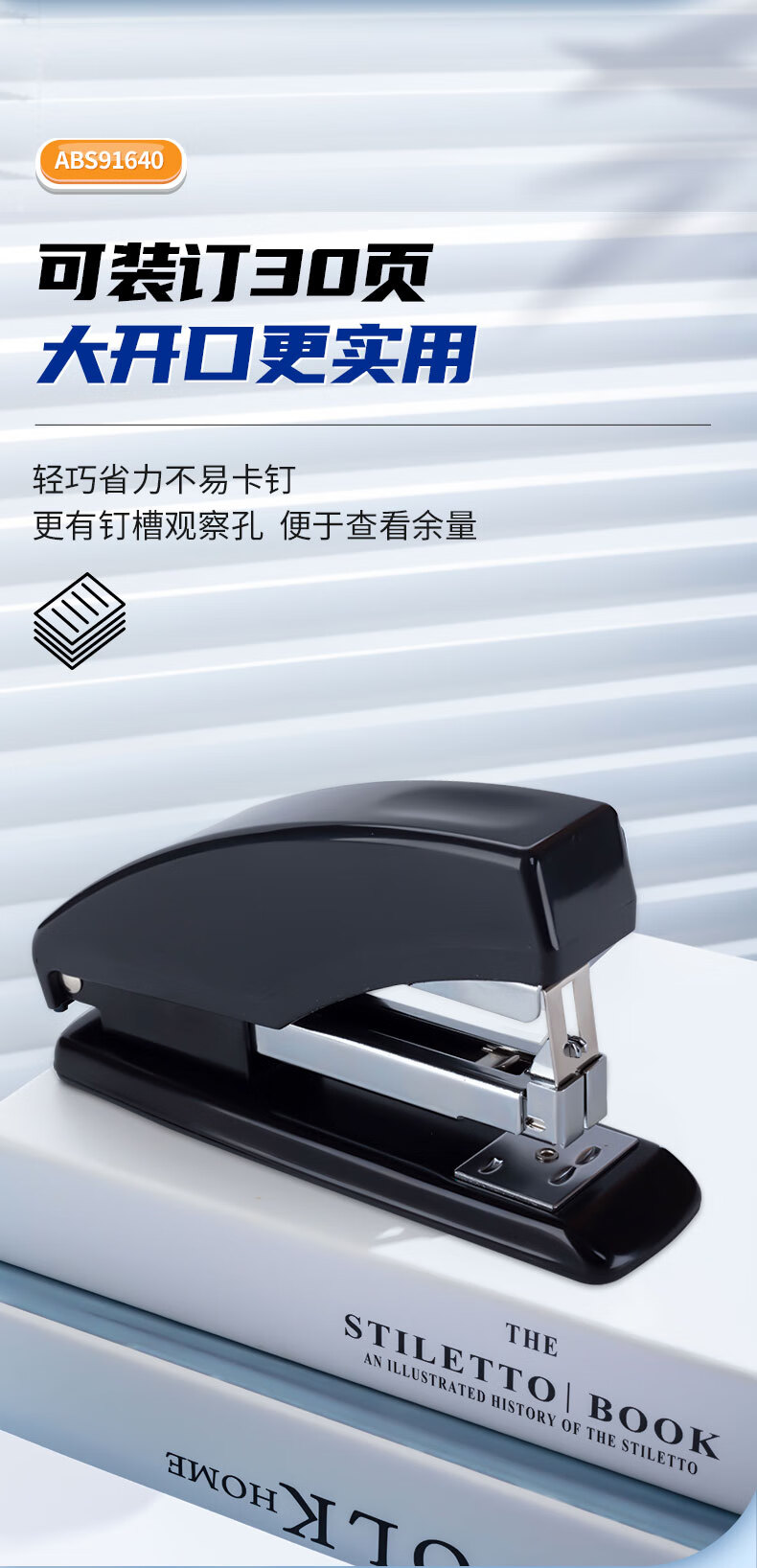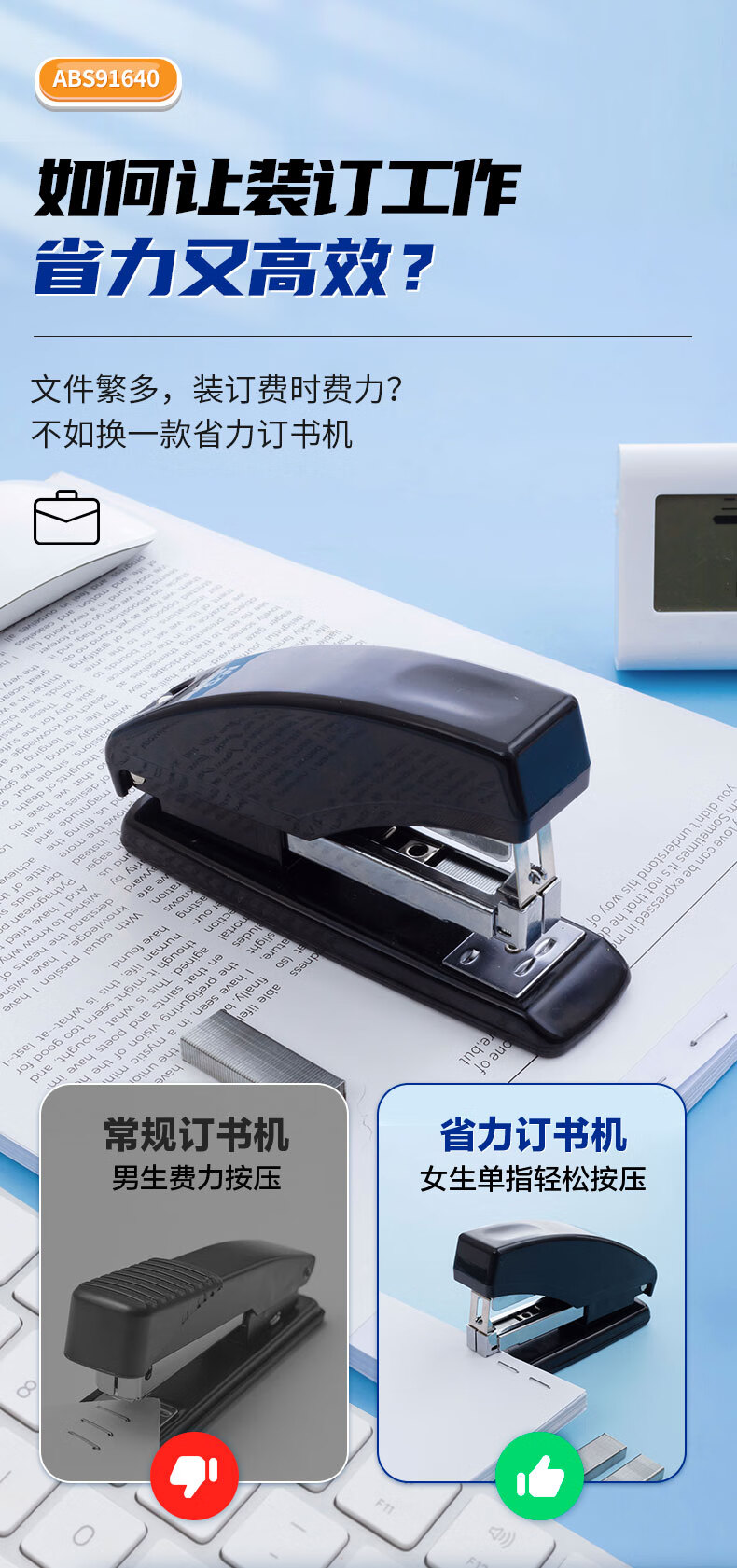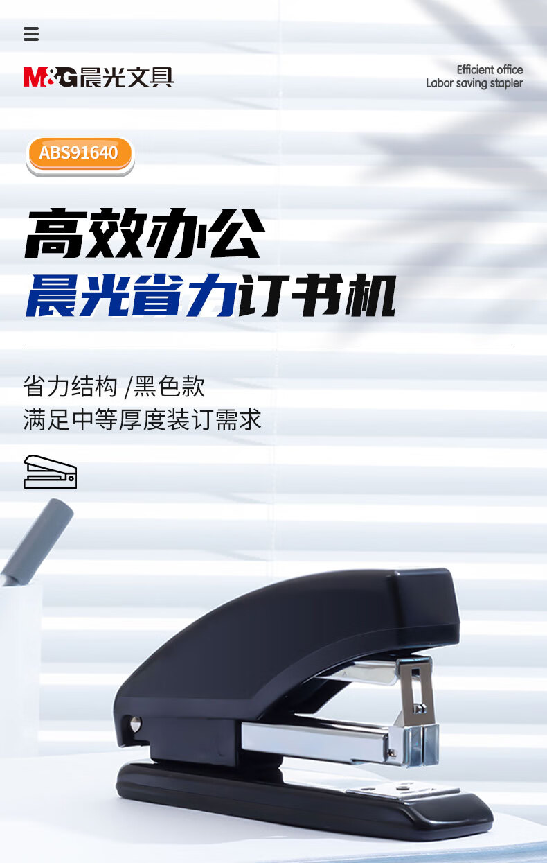 商品名稱:晨光ABS91640 訂書機 12#商務(wù)型省力型訂書器 辦公用品 黑色 單個裝