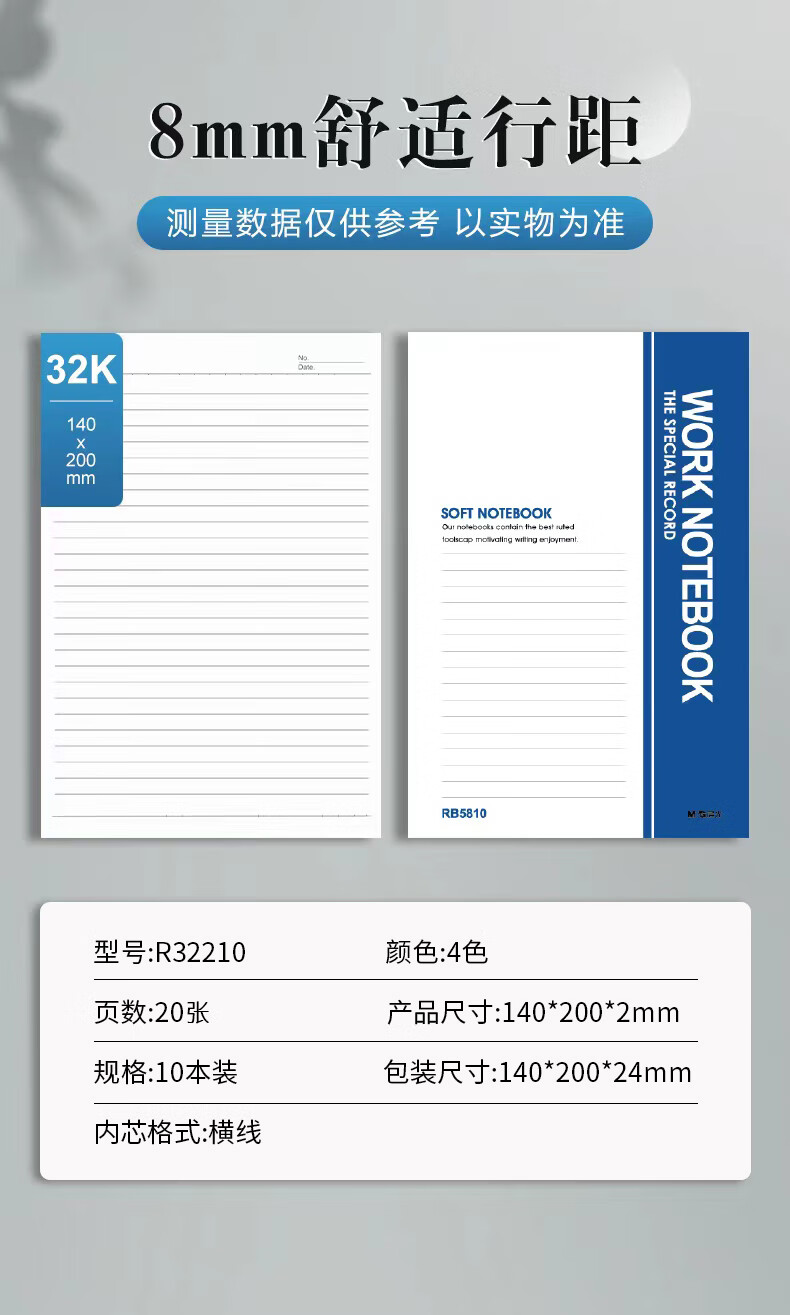 商品名稱:晨光R32210 軟抄本 32k/A5記事本 20張筆記本薄款會議記錄本隨身日記本 10本/包