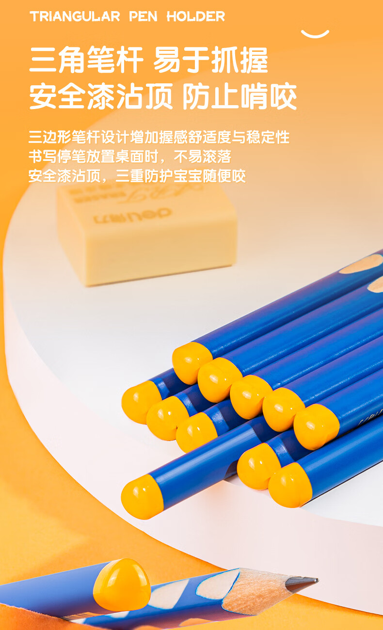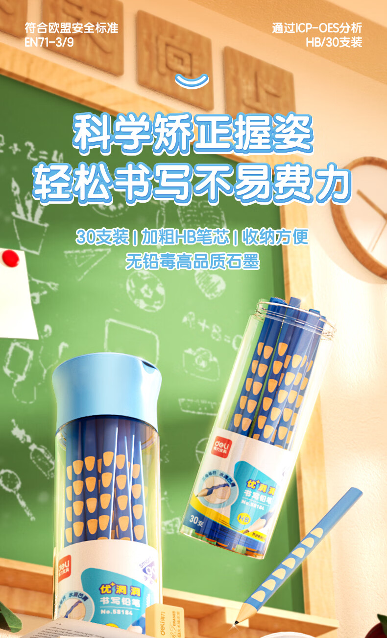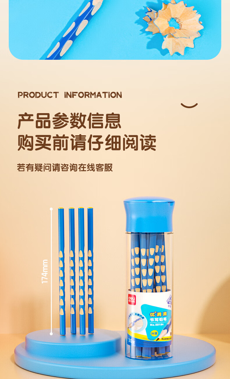 商品名稱:得力58184 洞洞筆鉛筆 HB鉛筆三角桿易抓握練字筆 30支/筒