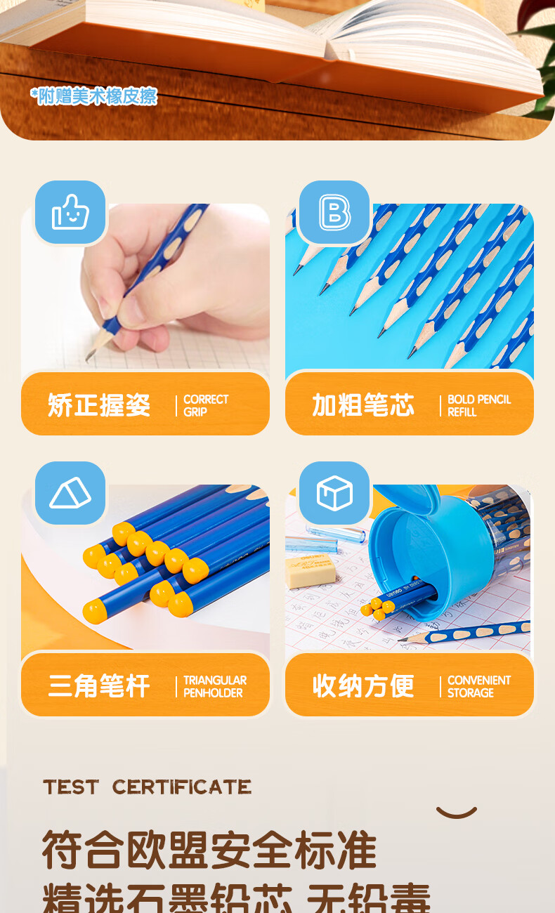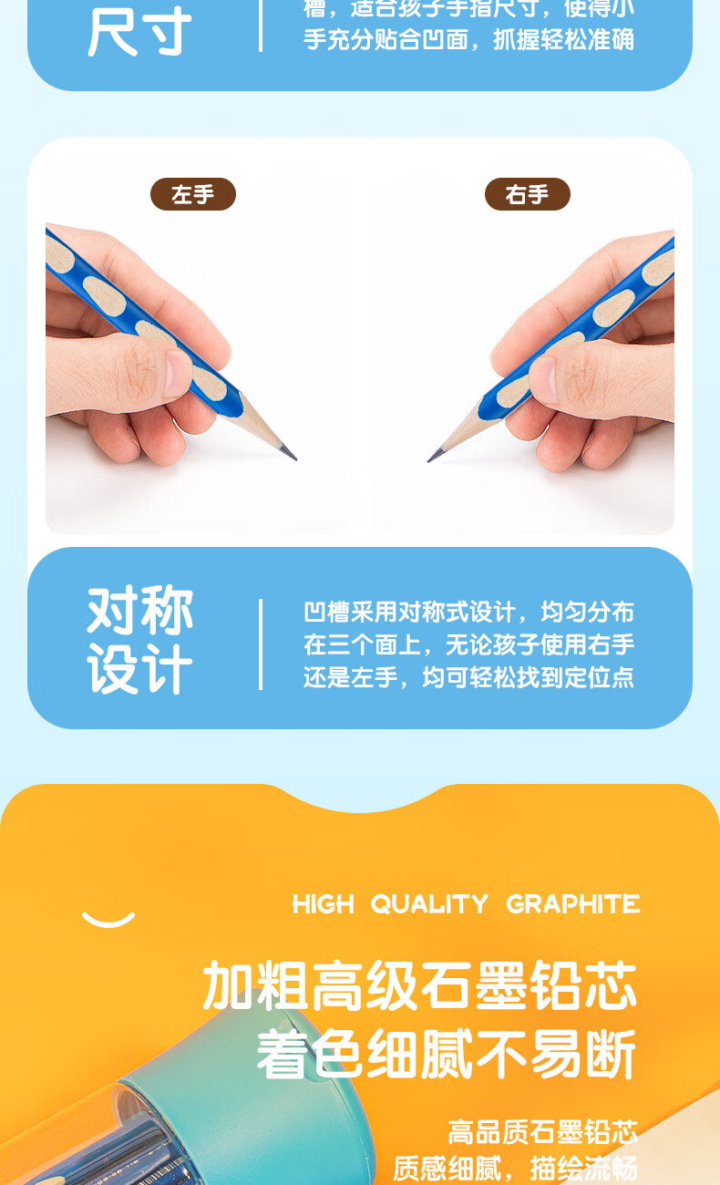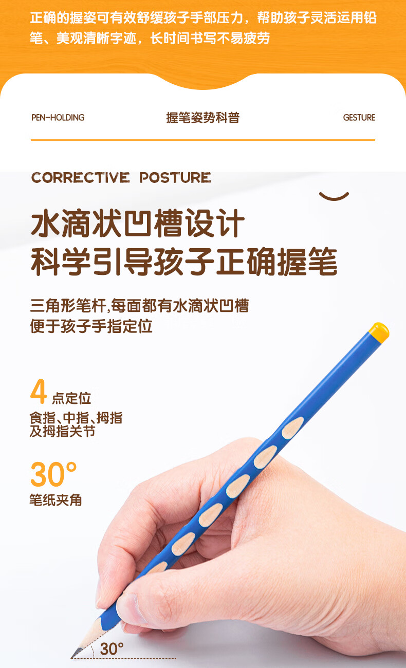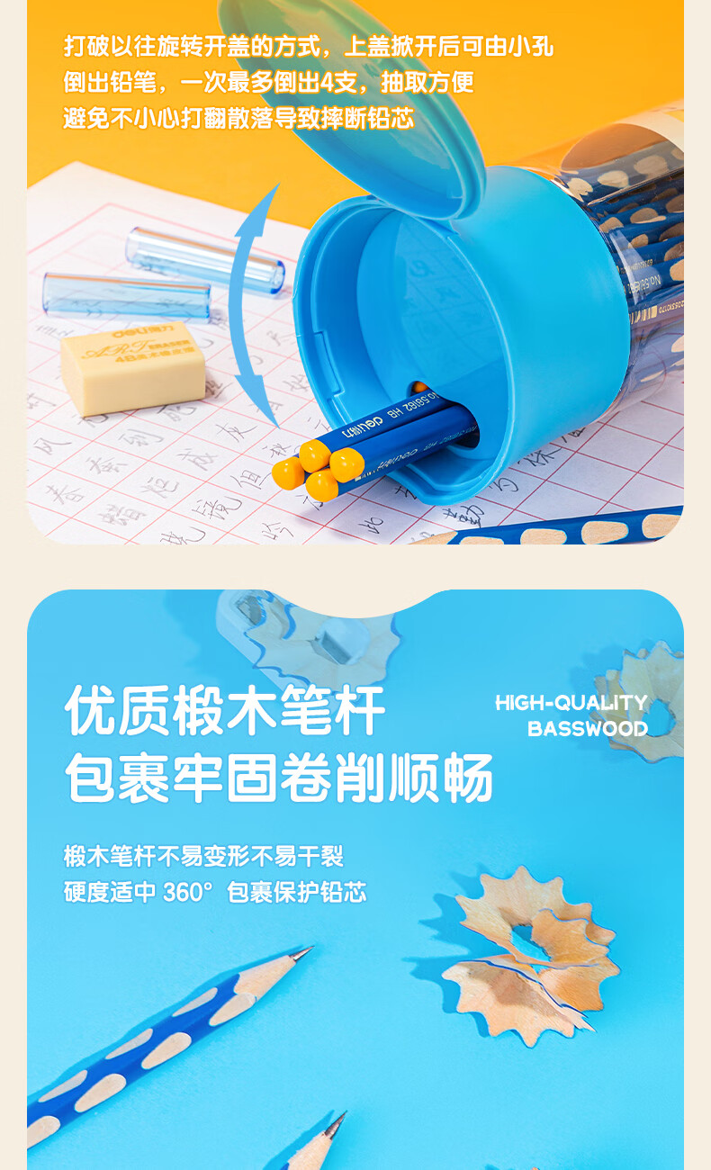 商品名稱:得力58184 洞洞筆鉛筆 HB鉛筆三角桿易抓握練字筆 30支/筒