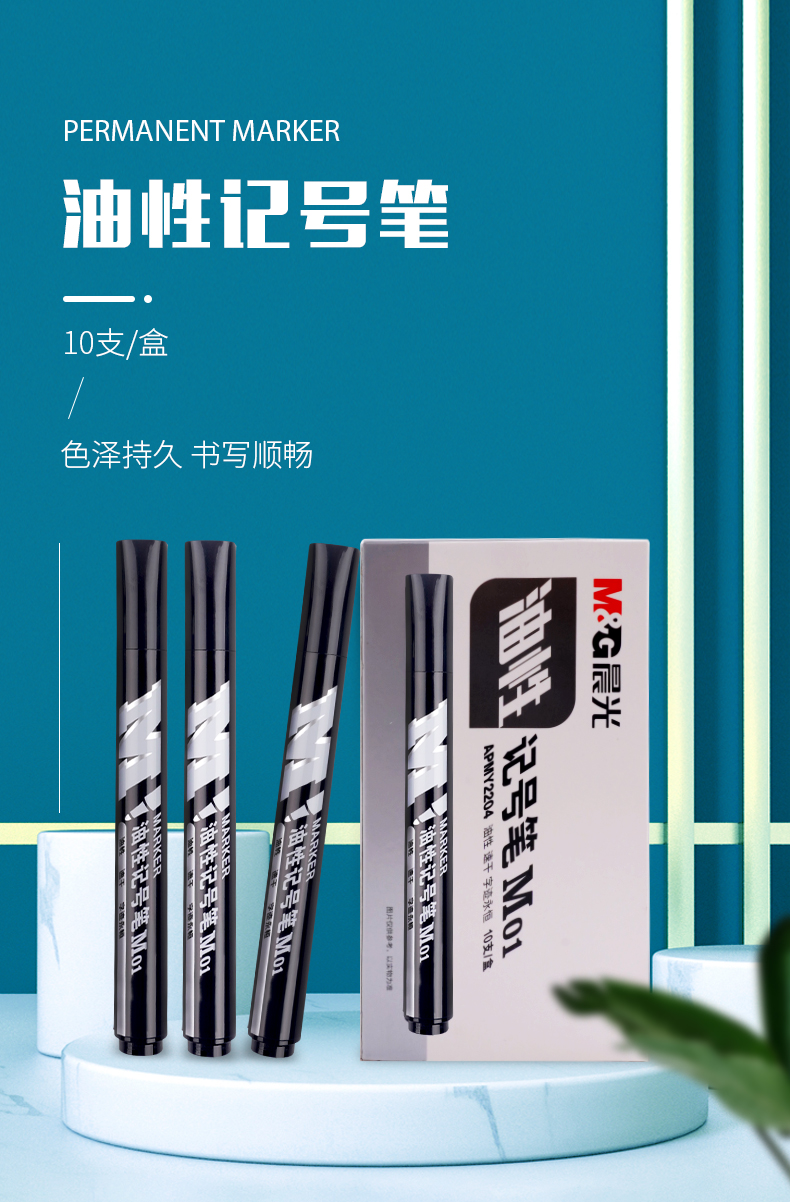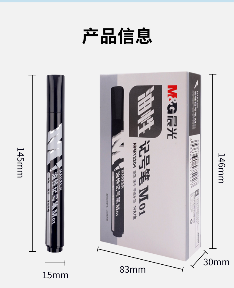 商品名稱:晨光APMY2204 黑色記號(hào)筆 M01單頭馬克筆物流筆標(biāo)記大頭筆 10支/盒