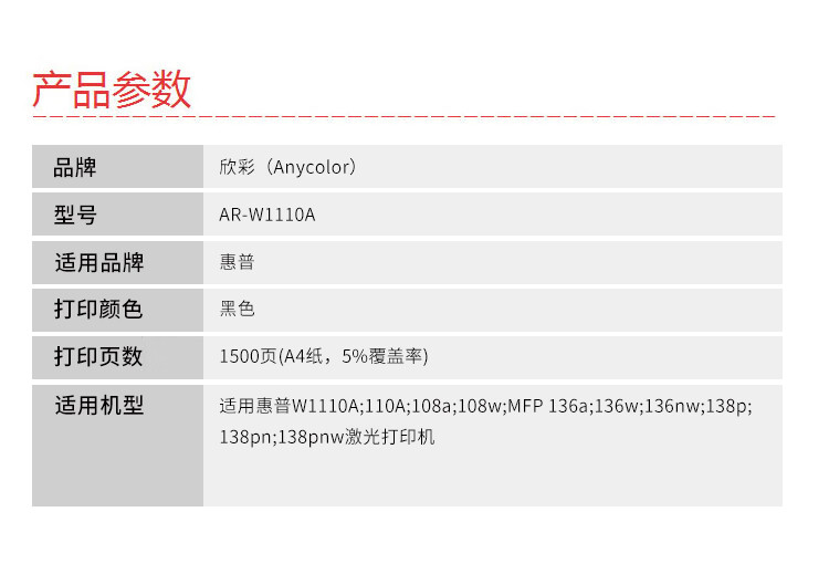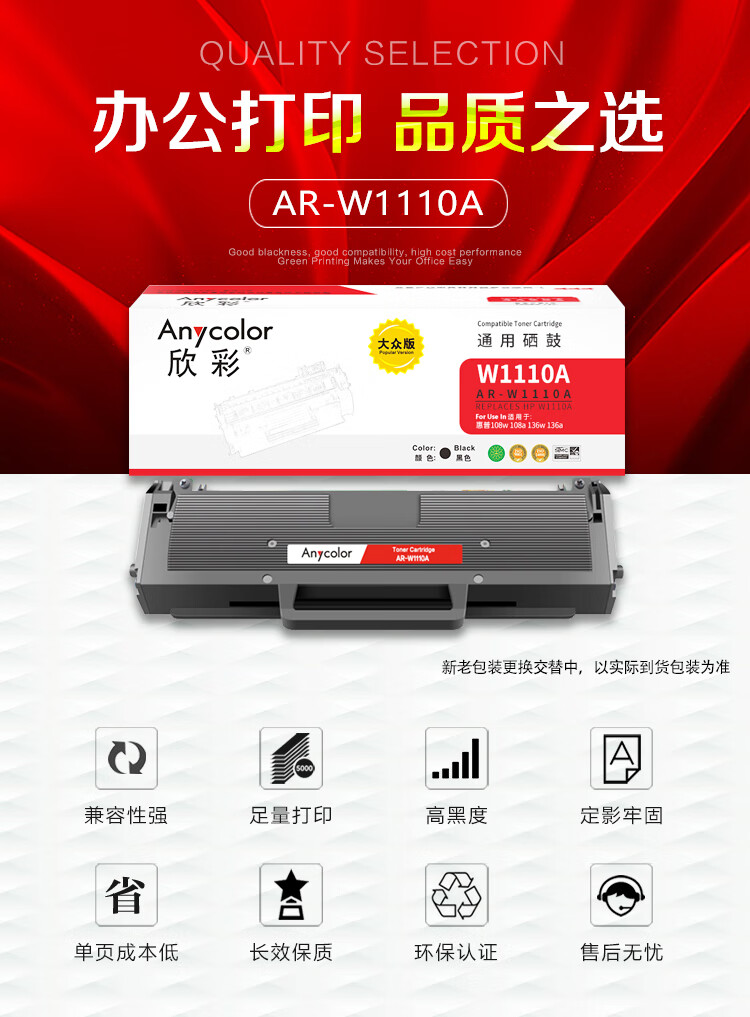 商品名稱:欣彩AR-W1110A硒鼓 大眾版帶芯片1.5K 適用惠普W1110A 110A 108a 108w MFP 136a 136w 136nw 138p激光打印機