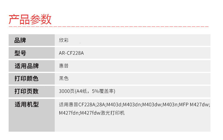 商品名稱:欣彩AR-CF228A硒鼓 大眾版 適用惠普CF228A 28A M403d M403dn M403dw M403n MFP M427dw M427fdn