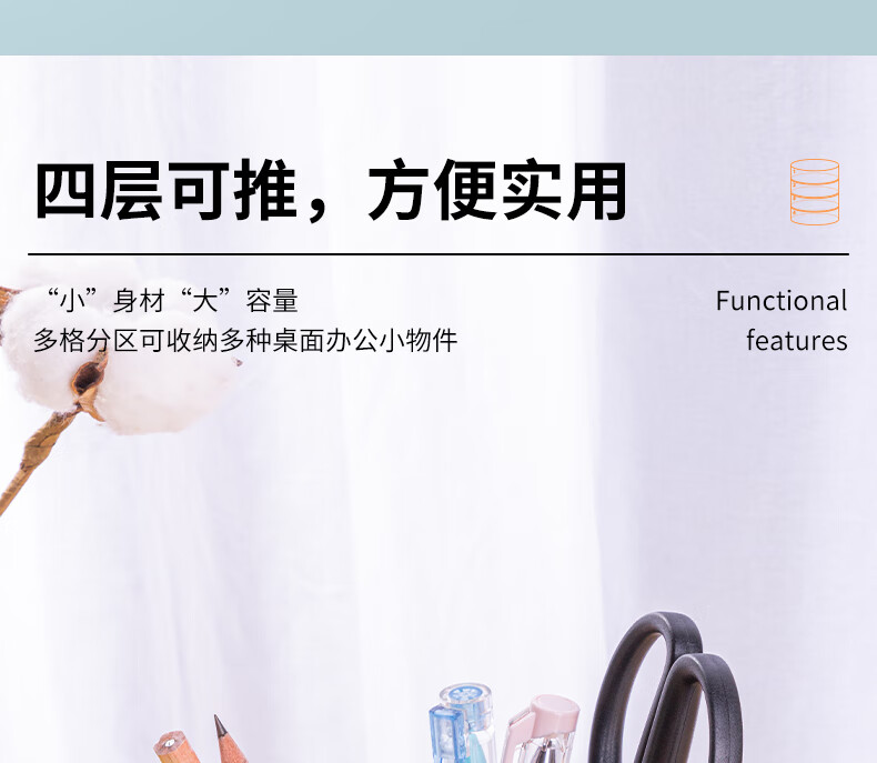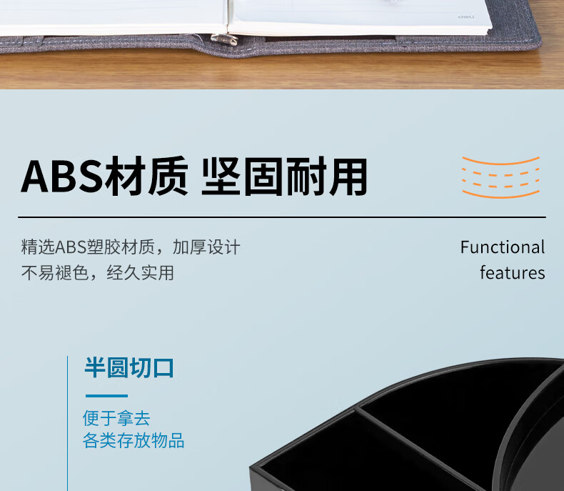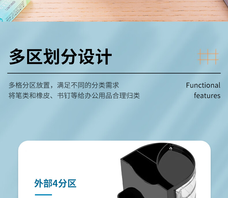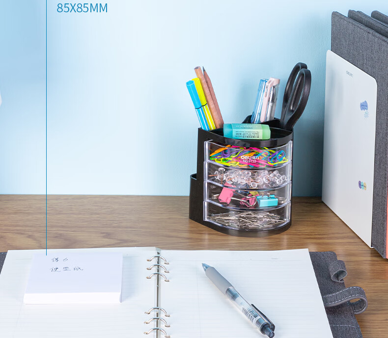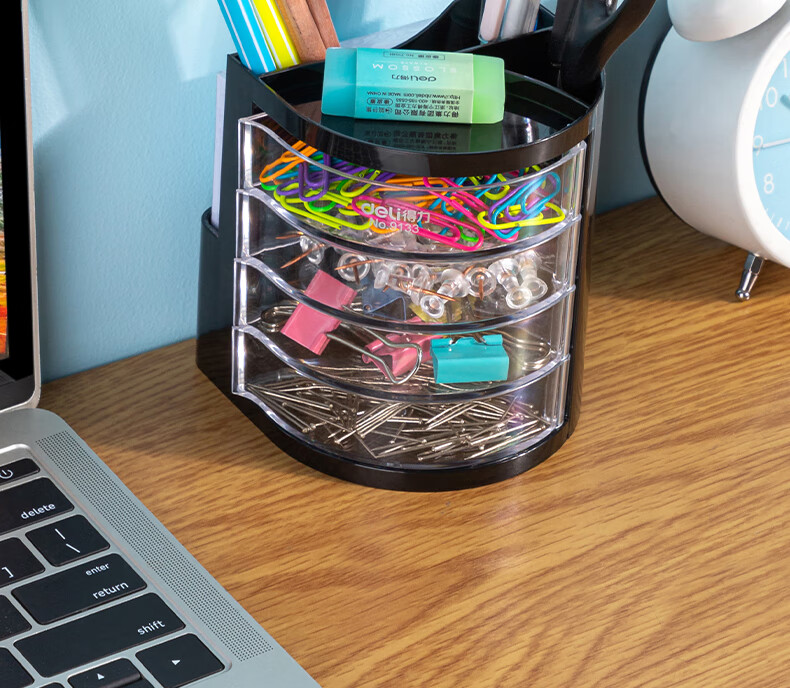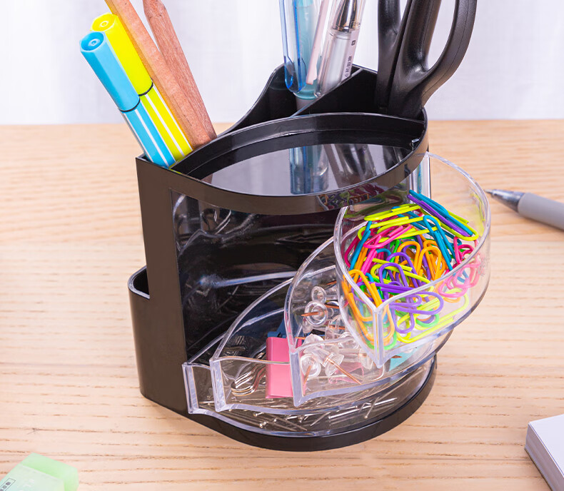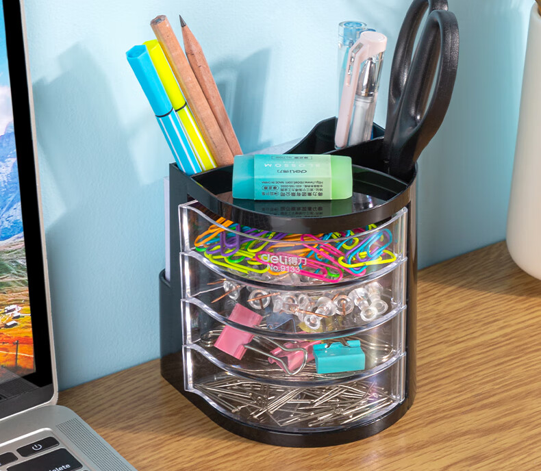 商品名稱:得力9133 四層多功能黑色筆筒 商務辦公桌面文具收納盒 單個裝