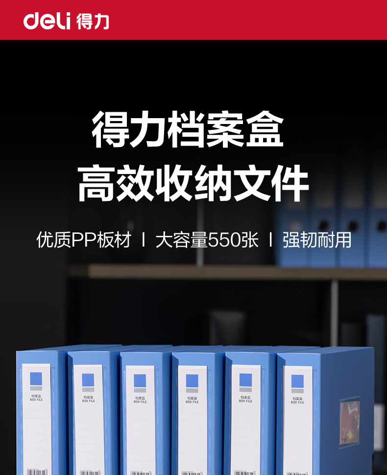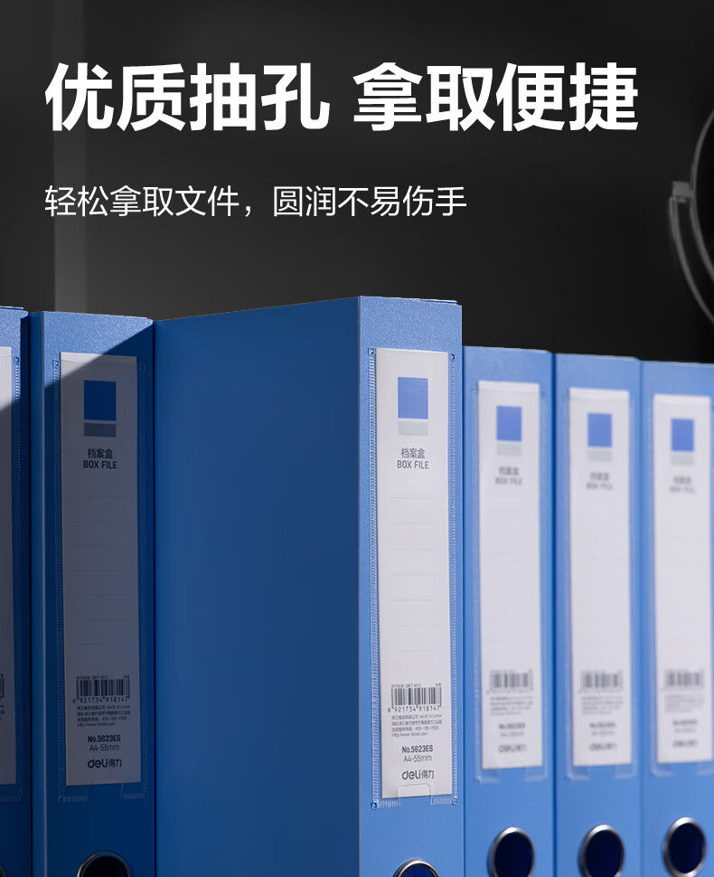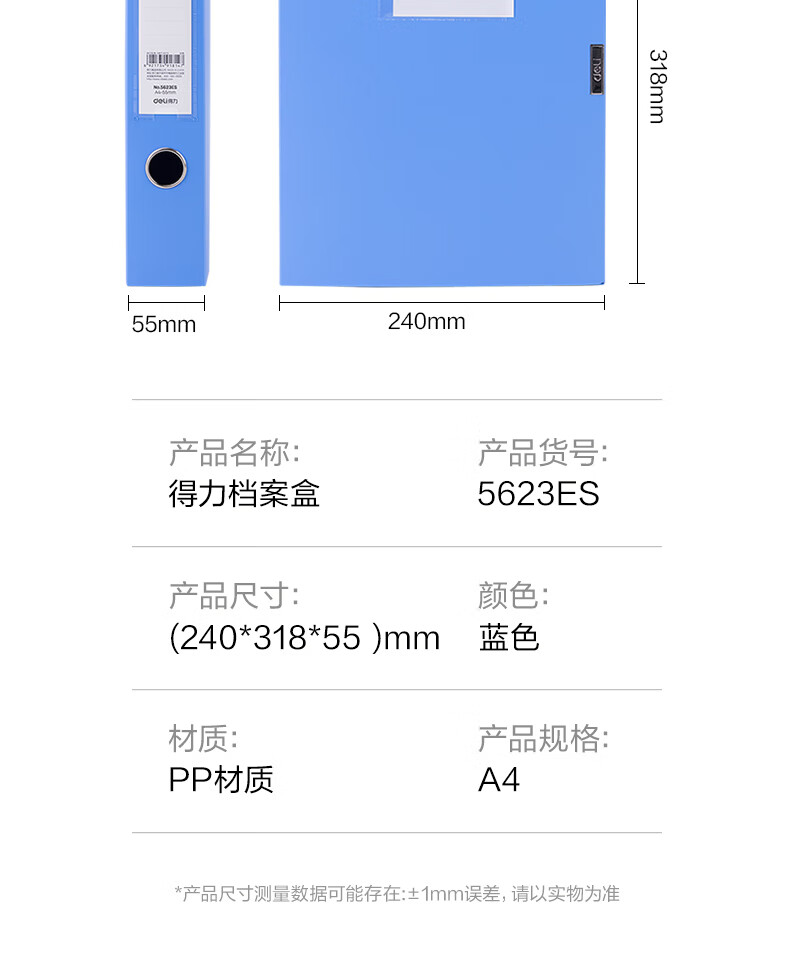 商品名稱:得力5623ES 粘扣檔案盒 55mmA4塑料收納資料盒文件盒 辦公用品 藍(lán)色 單只裝