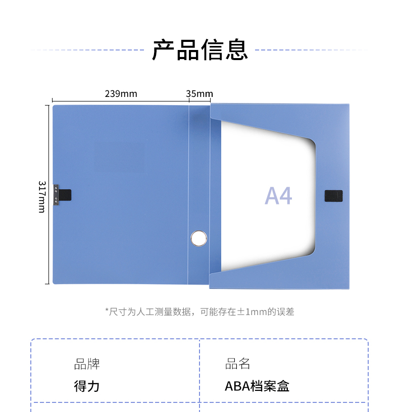 商品名稱:得力5682 檔案盒 35mmA4塑料加厚財務憑證收納文件盒資料盒 單只裝
