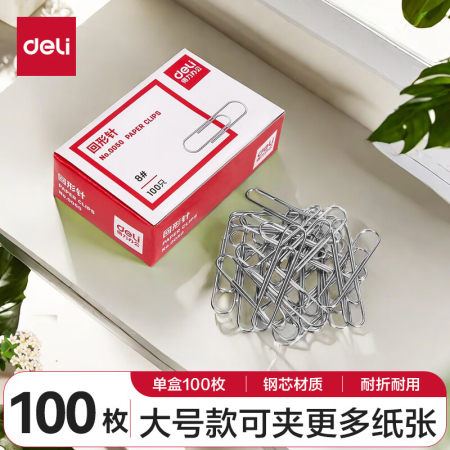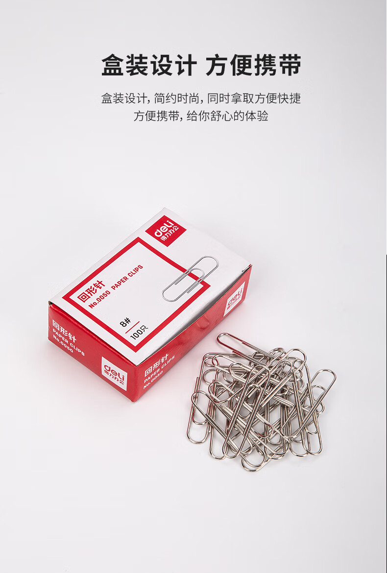 商品名稱:得力0050 回形針 50mm大號電鍍金屬曲別針 辦公用品文件收納 100枚/盒