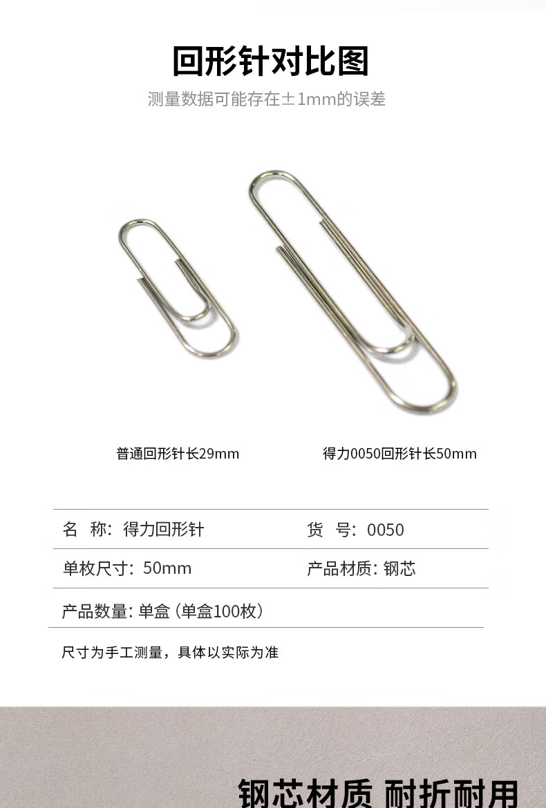 自營得力0050 回形針 50mm大號電鍍金屬曲別針 辦公用品文件收納 100枚/盒