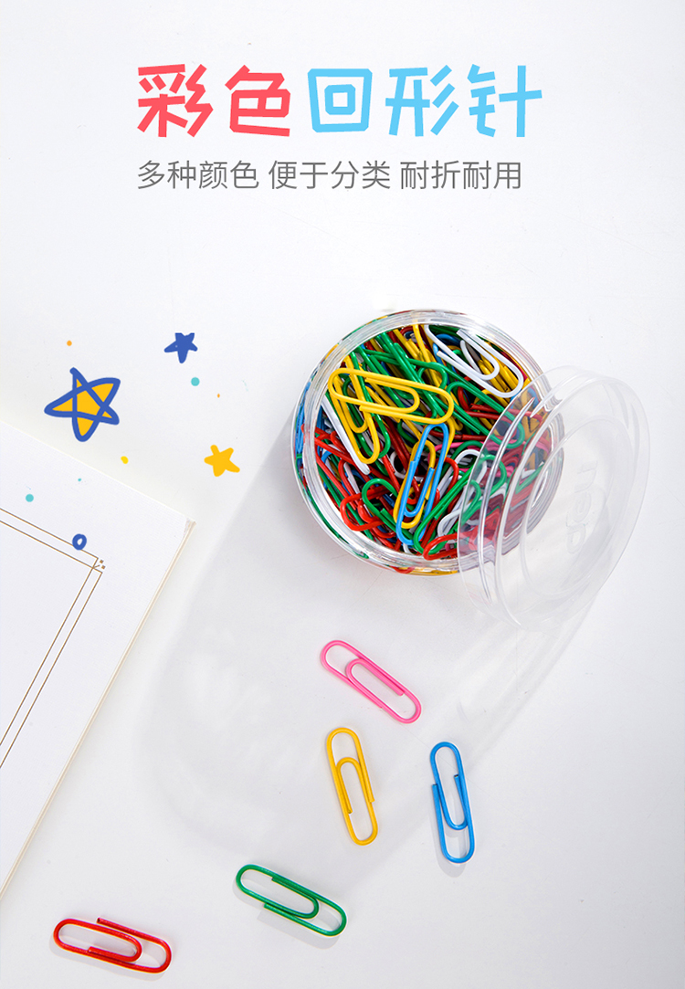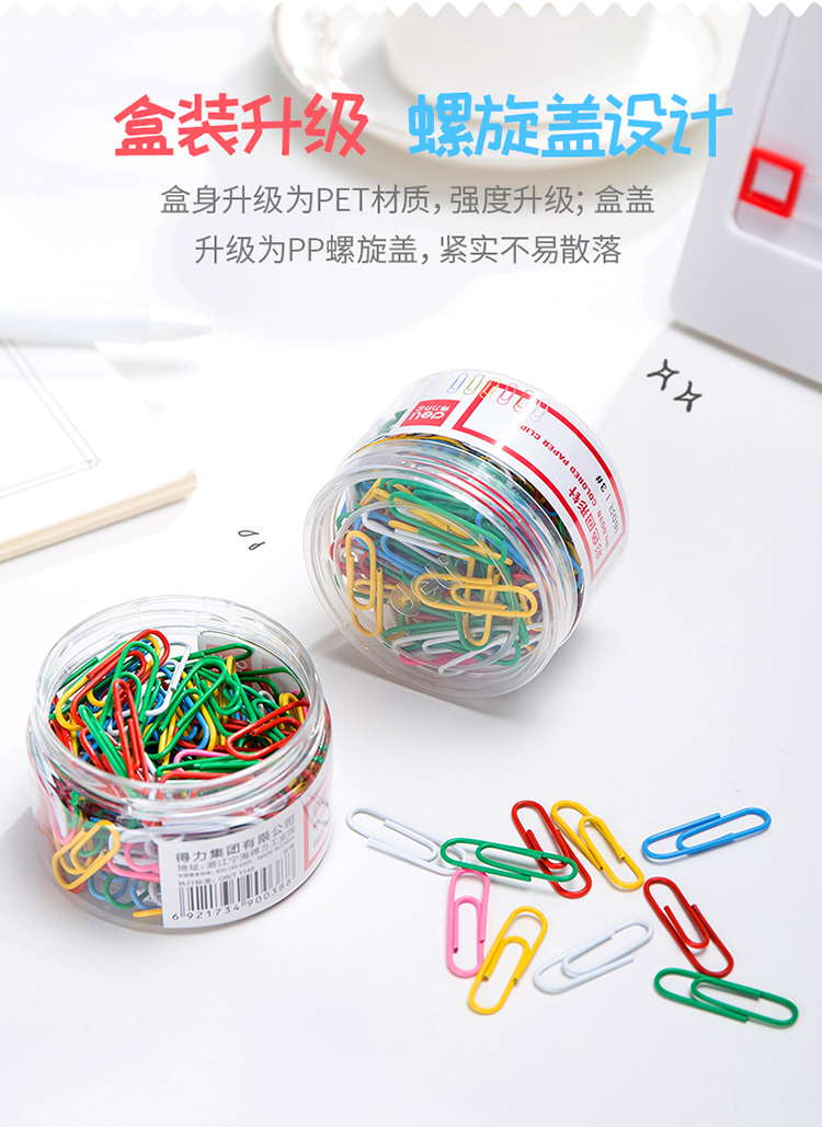 商品名稱:得力0038 彩色回形針 3#29mm金屬曲別針 辦公用品 160枚/筒