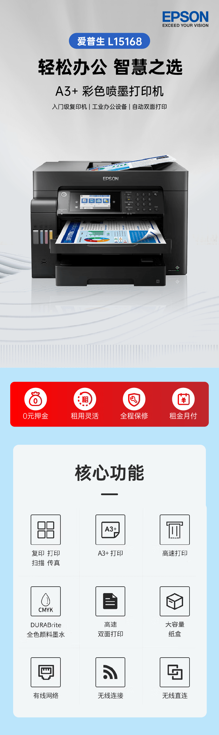 商品名稱(chēng):愛(ài)普生彩色噴墨復(fù)合機(jī)出租 茂名多功能一體機(jī)租賃 彩色/A3/中低速(月)