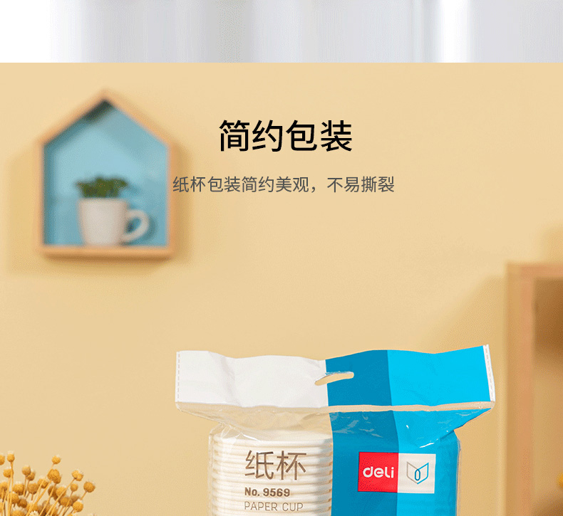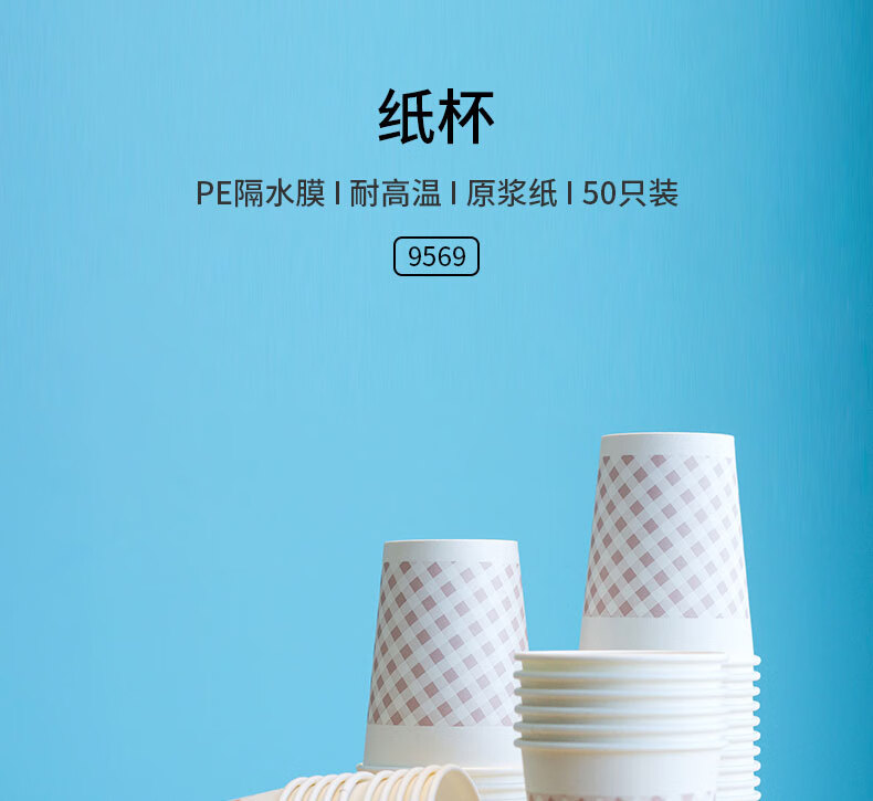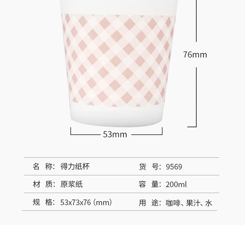 商品名稱:得力9569 一次性紙杯 200ml木漿紙網格加厚杯子/水杯 50只/包
