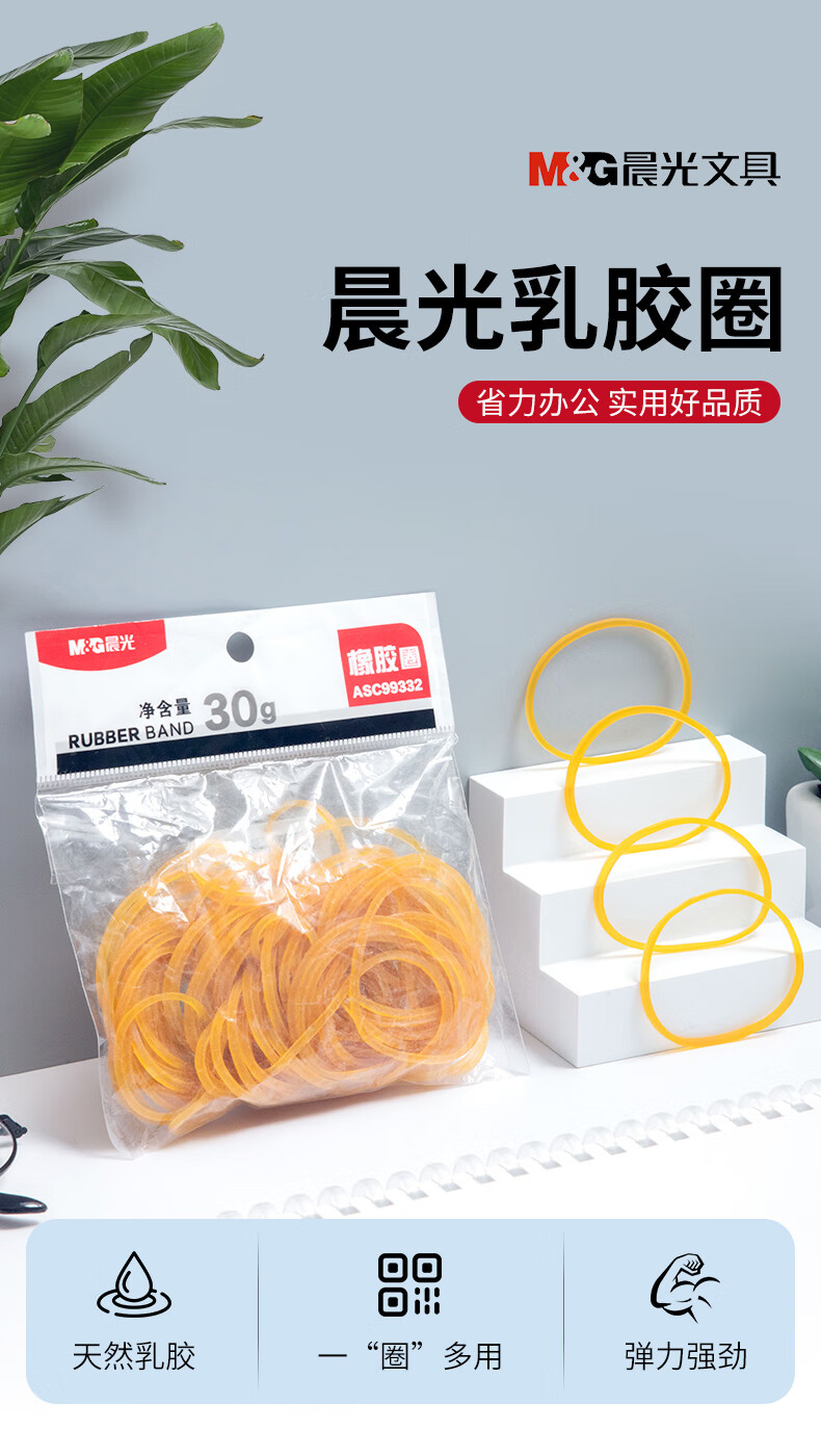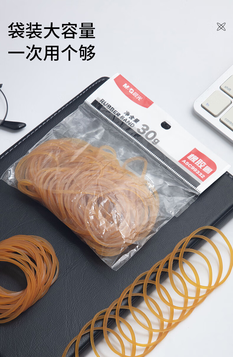 商品名稱:晨光ASC99332 乳膠圈 橡膠圈牛皮筋 30g高彈力橡皮筋 財務(wù)用品 單位:包