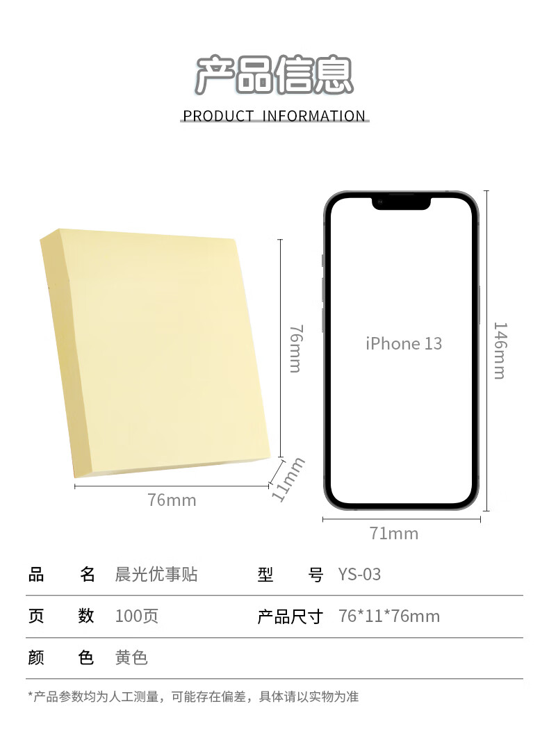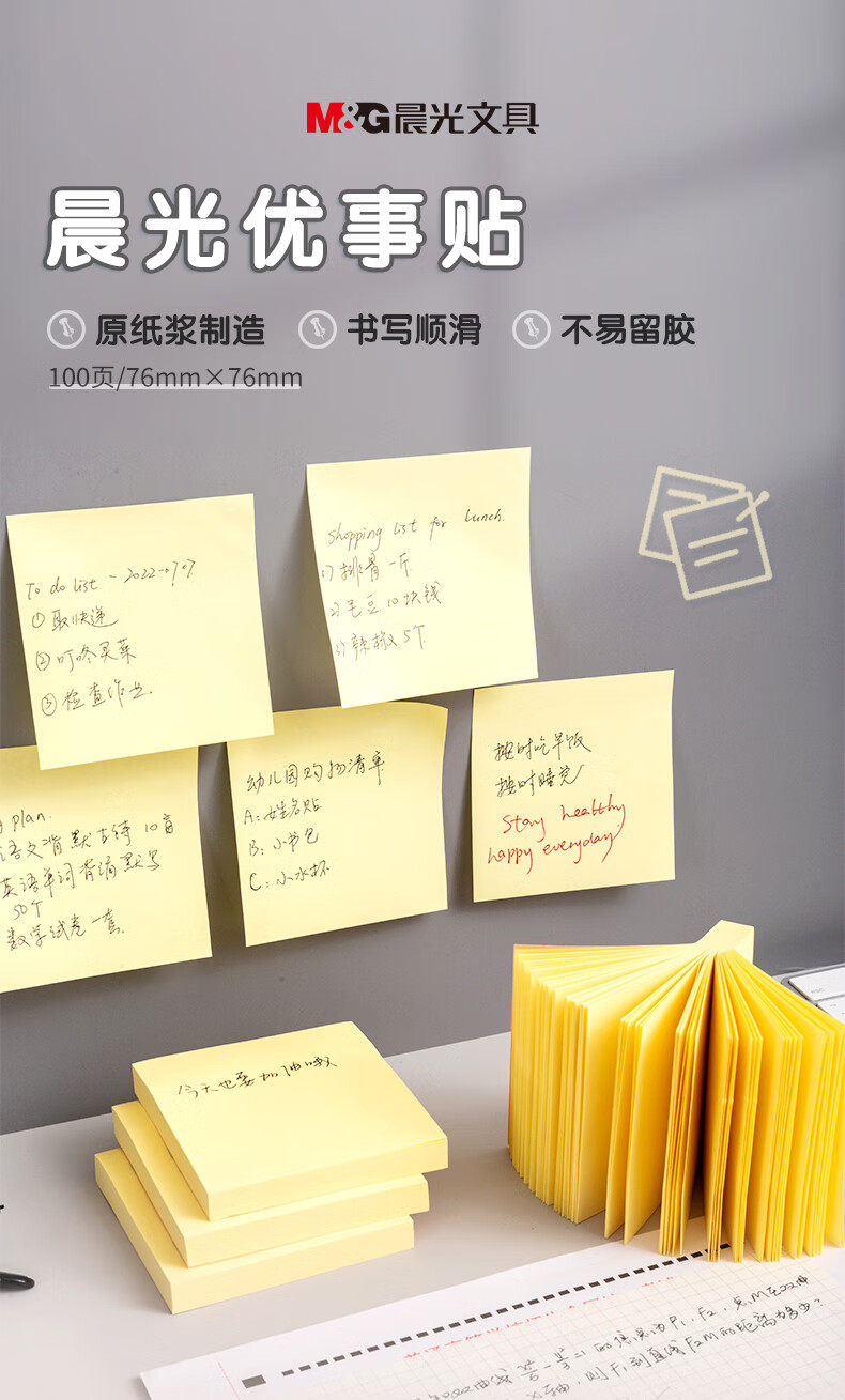 商品名稱:晨光YS-03 黃色便利貼 76*76mm便簽紙 100張記事貼留言貼 單位:本