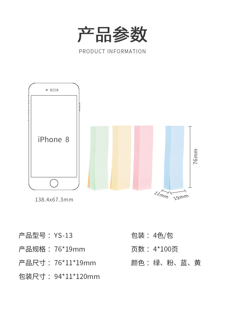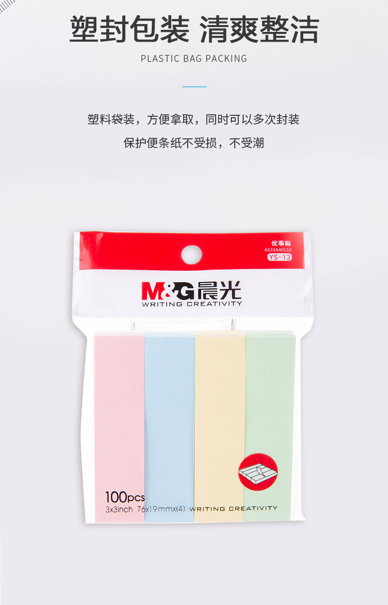 商品名稱:晨光YS-13 便利貼 76*19mm標(biāo)簽貼姓名貼 400張4色記事留言貼優(yōu)事貼 單本裝
