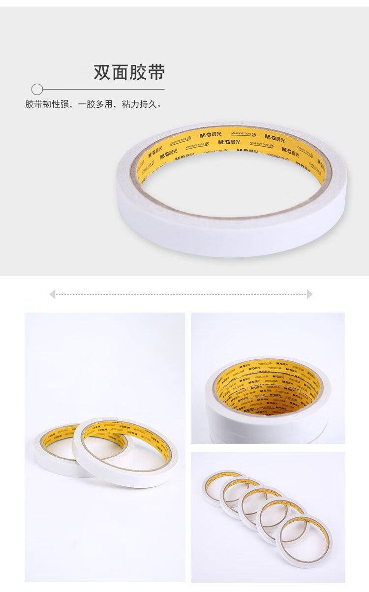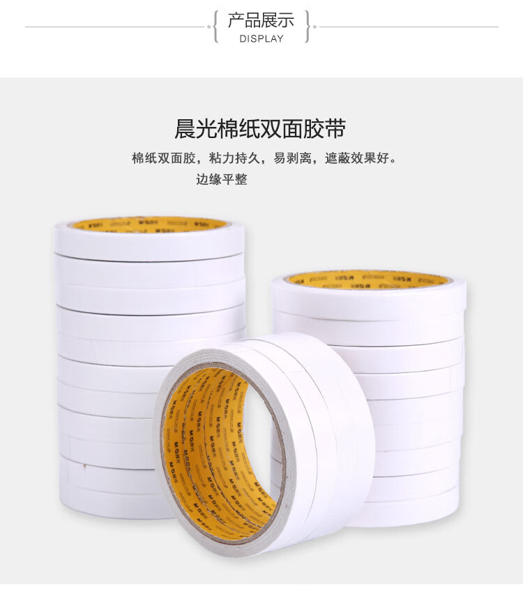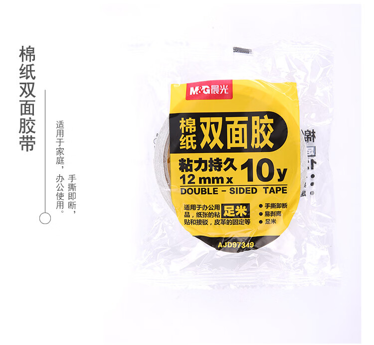 商品名稱:晨光AJD97349 雙面膠 高粘性棉紙膠帶 12mm*10y(9.14m/卷) 2卷/袋