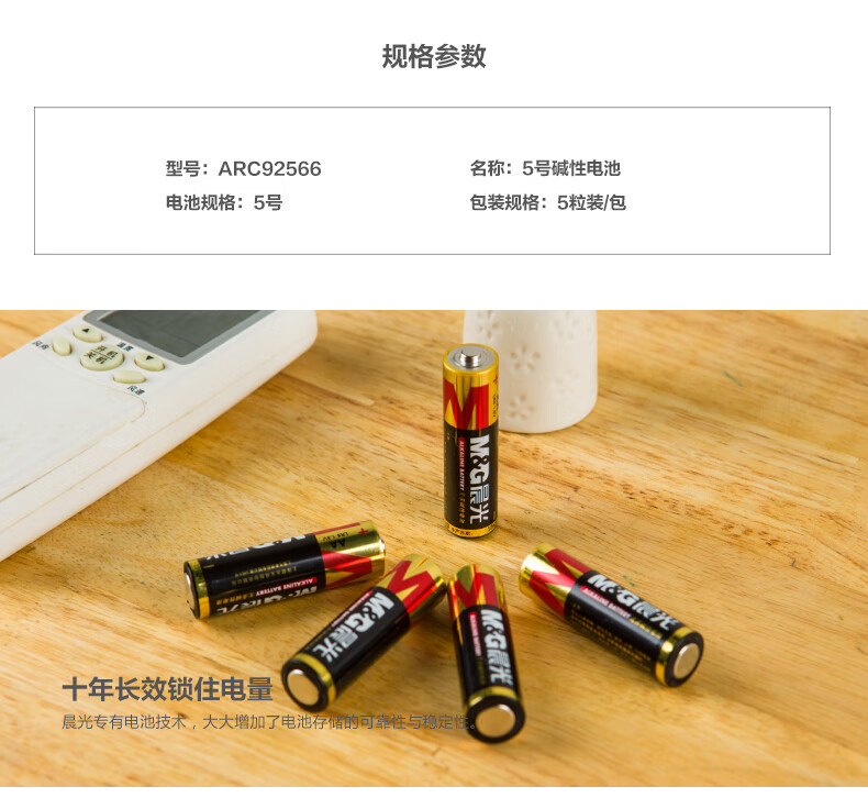 商品名稱:晨光ARC92566 5號(hào)堿性電池 可撕裝 5粒/卡