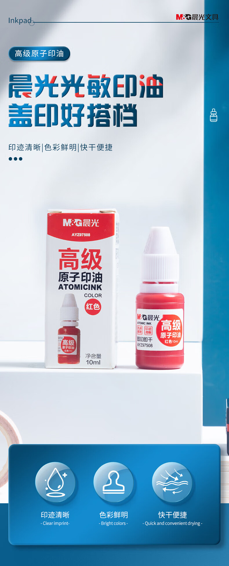 商品名稱:晨光AYZ97508A 原子印油 10ml財務紅色印章印臺專用印油 單瓶裝